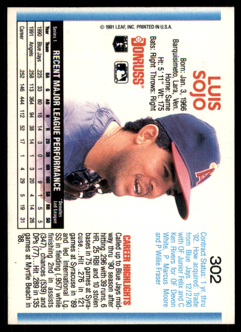 | 1992 Donruss Luis Sojo California Angels #302 |