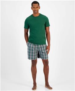 Club Room Men's Green Solid T-Shirt & Woven Plaid Boxer Set Size XL
