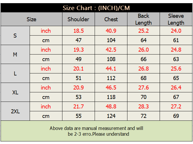2.The size is Asian size ,To be safe,Please measure one of your own Jacket to make comparison with ours,