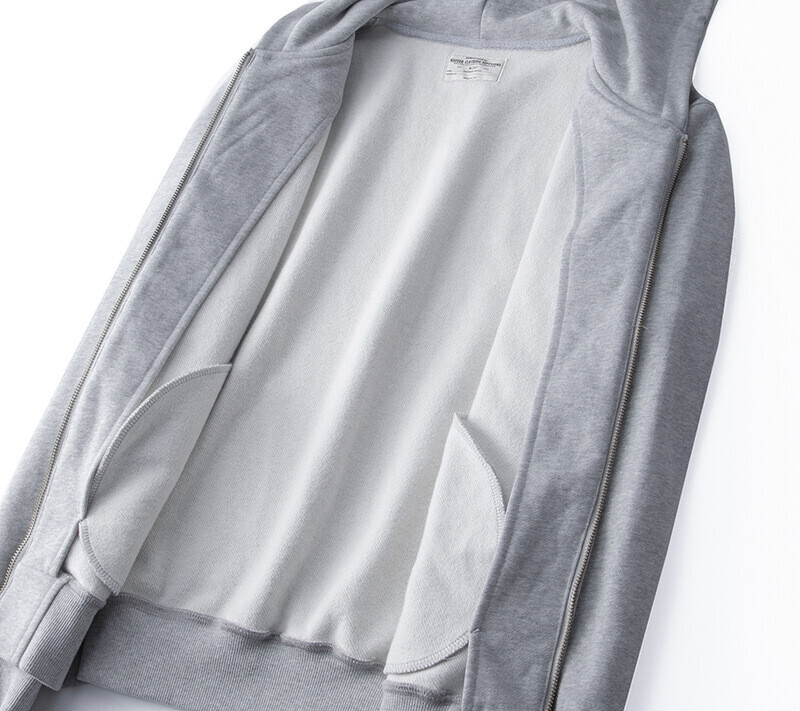 The bottom of the wool has a light fleece feel. It is not fleeced, because the fleeced fabric more or less has the situation of fleecing. YKK zipper, basic hooded, hat added double fabric, relatively thick and stiff.