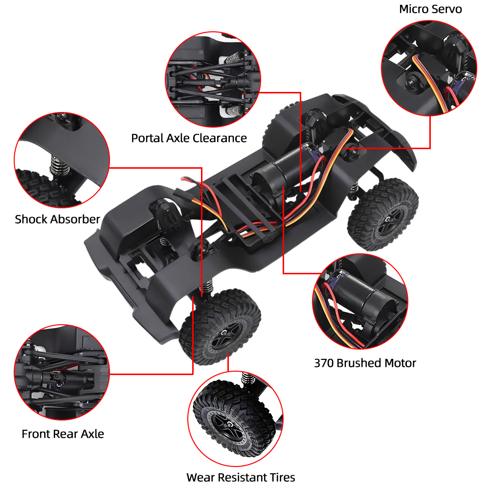 1. Material: Make of high quality metal and reinforced nylon, ensure a long service life 2. System: The RC car chassis has smooth 2-speed transmission system for trx4m 1/18 scale RC Crawler Car. 3. Purpose-built from the ground up to conquer any terrain.Equipped with a micro servo to shift speed mode, let RC car straddle even larger obstacles and climb steeper grades 4. Upgrade: Heavy duty metal rails, lower battery tray, high-torque 370 motor, High and low speed differential micro servo perfect matching models as replacement of original parts, improve the performance of the vehicle 5. Application: A good choice to DIY and upgrade, for Traxxas TRX4M 1/18 scale RC Crawler Car