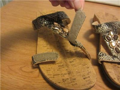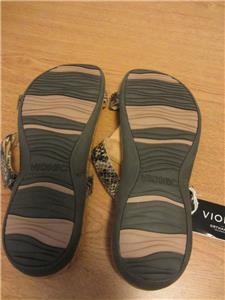 New with tags, Vionic Orthaheel Viviana sandal. Embellished, snake print, size 10. Adjustable velcro closures. I had to put an upper material so I chose leather because it feels like it but it doesn't say that anywhere so I'm not 100% sure.