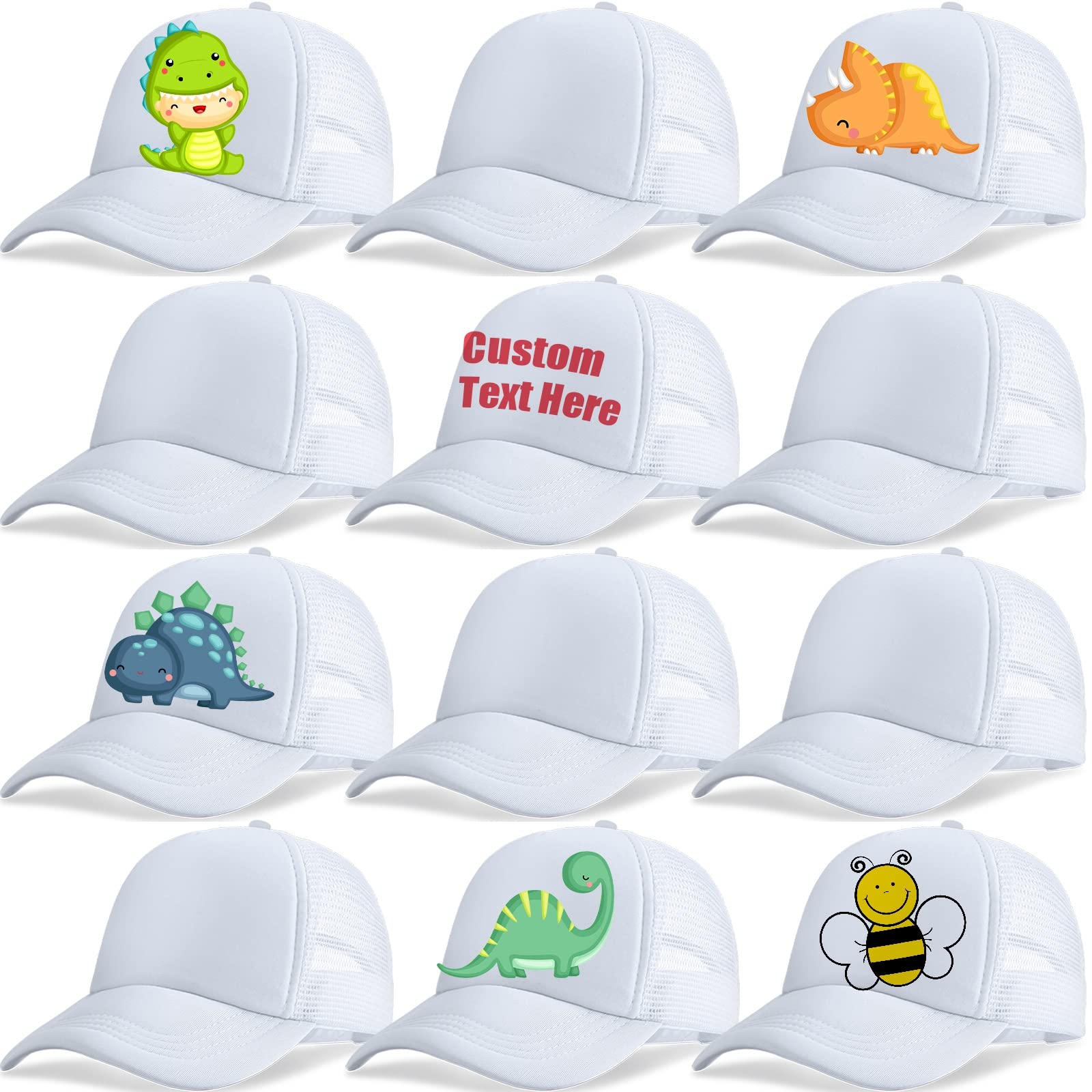 Features: Kids DIY time: Kids can inspire their creativity and develop their manual ability by customizing their own adjustable sublimation blank polyester mesh cap. Meaningful presents made by yourself: You can DIY these blank polyester mesh caps with memorial meanings and send them to your friends family or yourself as birthday gifts, souvenirs, or just invite them to DIY with you and share the fun. Specifications: Material: foam, polyester, mesh fabric Color: as picture shows Size: Cap circumference: about 53 x 55 cm/ 20.87 x 21.65 inches Cap depth: about 9 cm/ 3.54 inches Brim: about 6.5 cm/ 2.56 inches Package includes: 12 x Trucker cap for kids Notes: Manual measurement, please allow slight errors on size. The color may exist a slight difference due to different screen displays. Please make sure the head circumstance of your child before ordering. Sublimation recommended temperature and time is 140 degrees Celsius /284 degrees Fahrenheit for 3 seconds.
