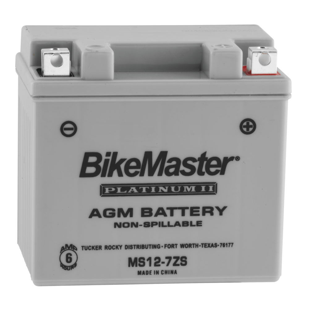 If you're looking for a maintenance free and non-spillable battery for your bike, the AGM Platinum II battery by BikeMaster is for you. Manufactured from absorbed glass mat that captures electrolytes, these batteries have a longer storage life and higher performance than standard wet batteries. They are permanently sealed so that you do not need to check levels or add water.