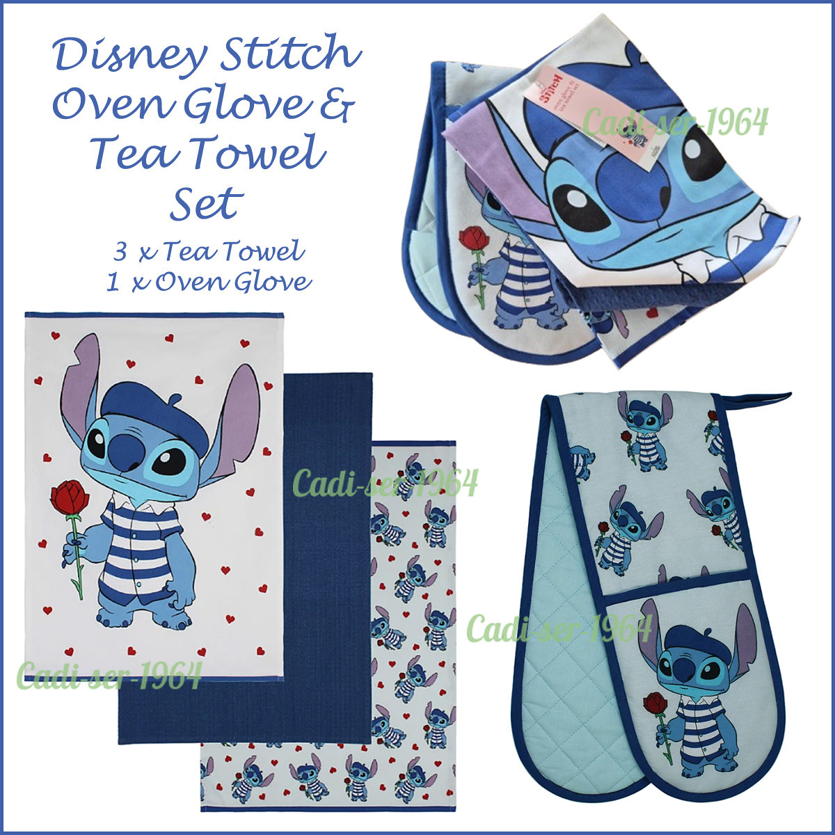 Disney Stitch Love Tea Towel & Oven Glove Set 3 x Tea Towels 1 x Oven Glove