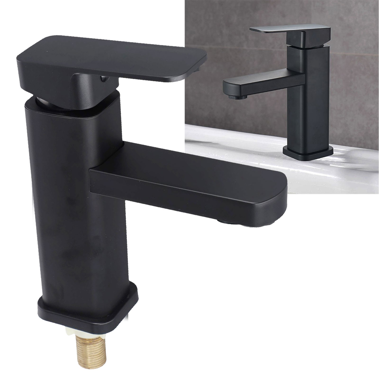 304 Stainless Steel Black Single Cold Sink Faucet Bathroom Counter Basin Faucet