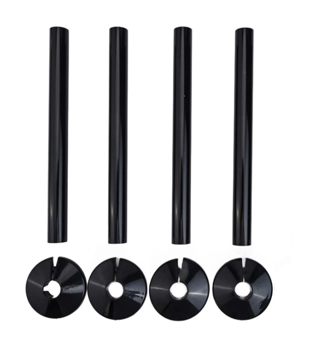 Easily Installable Black PVC Sleeves with Matching Collar Rings Set of 4