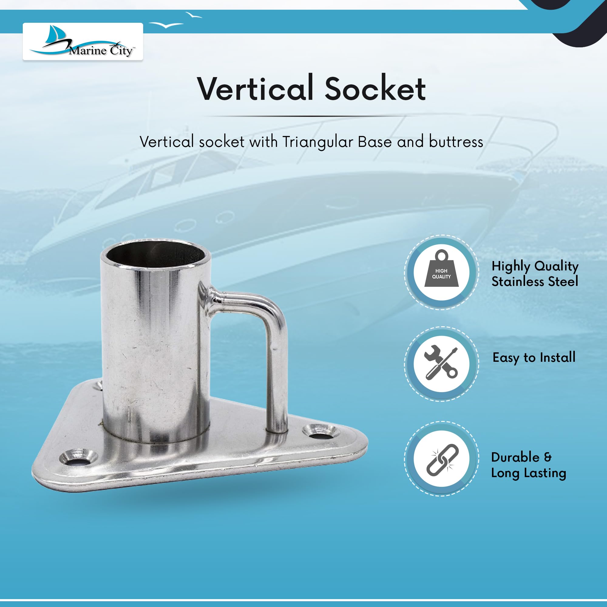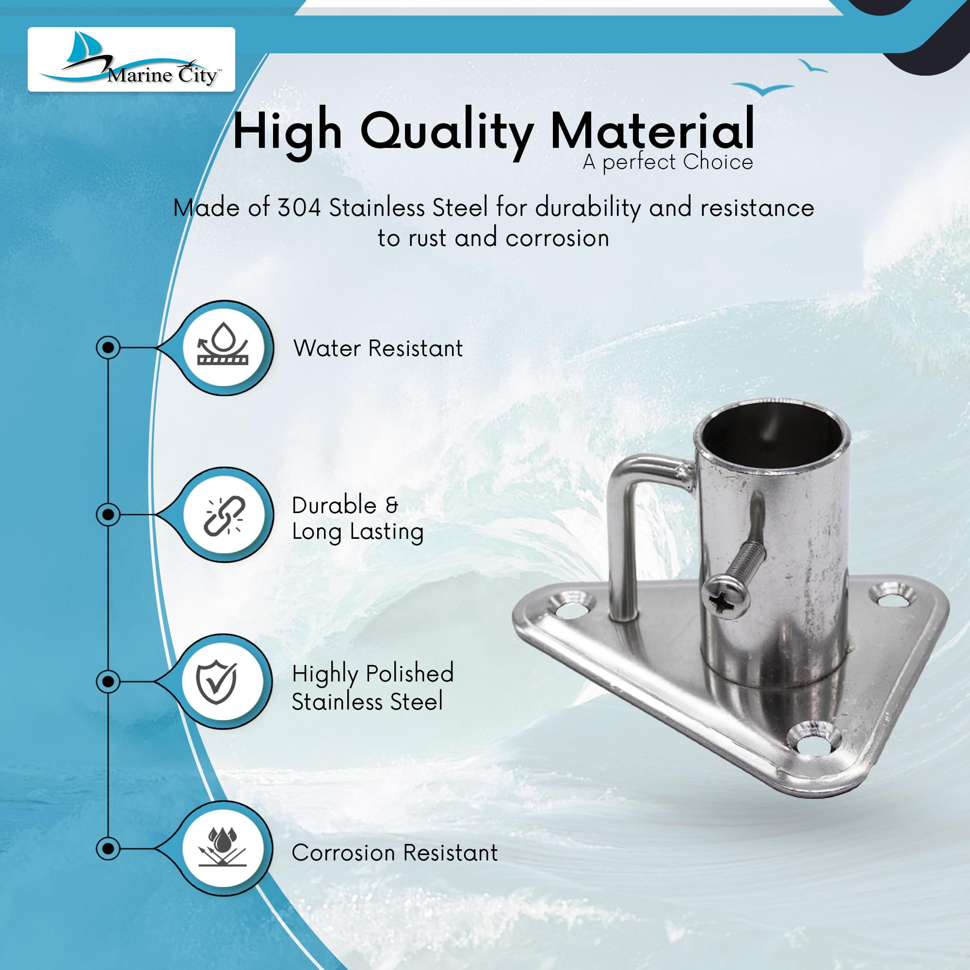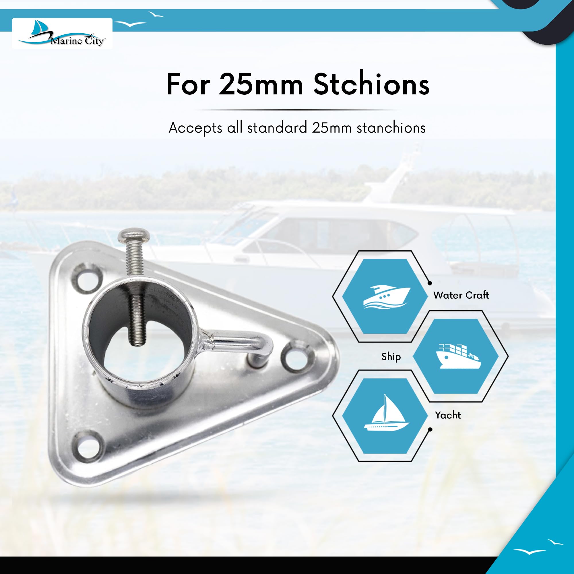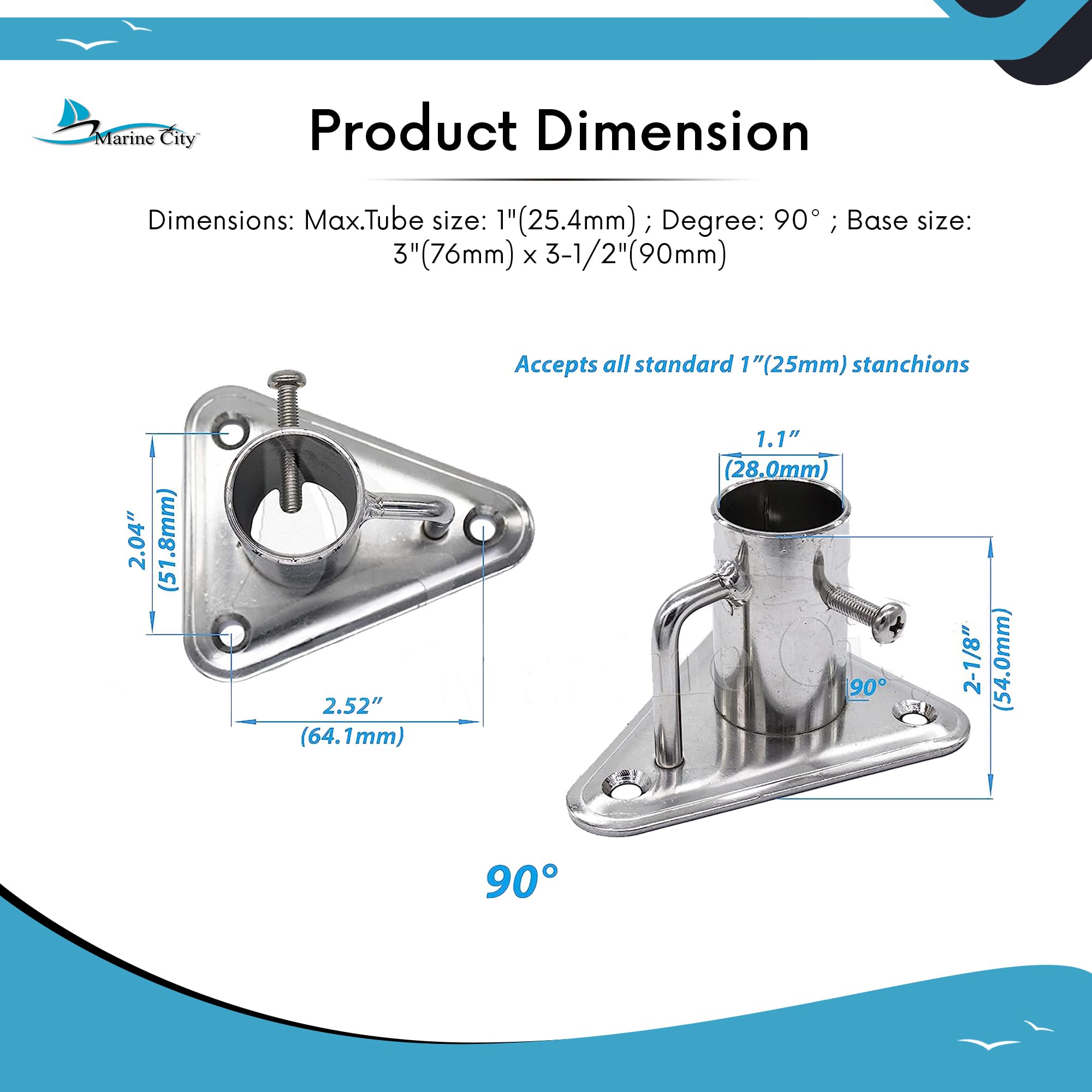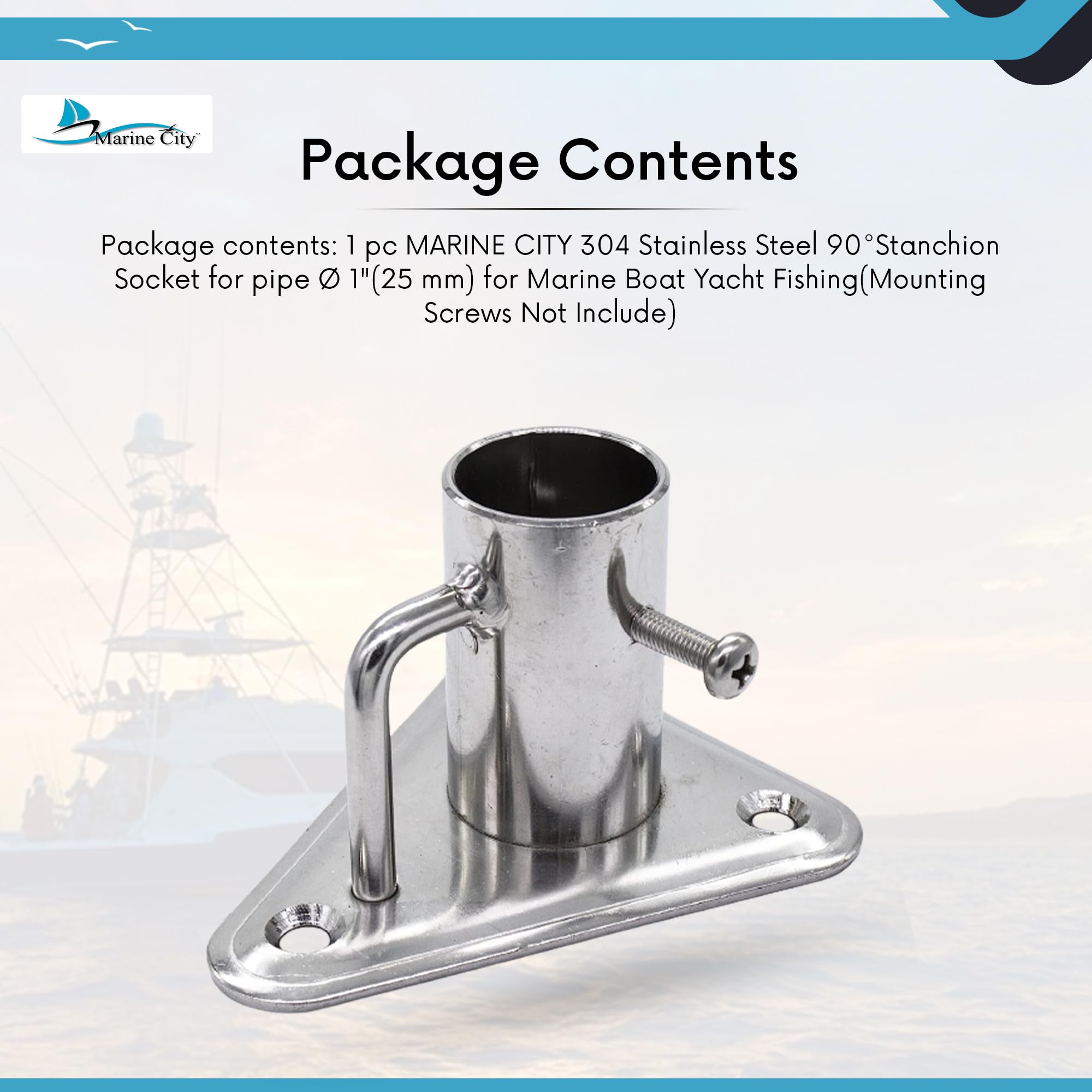 • Package contents: 1 pc MARINE CITY 304 Stainless Steel 90°Stanchion Socket for pipe Ø 1"(25 mm) for Marine Boat Yacht Fishing(Mounting Screws Not Include)
