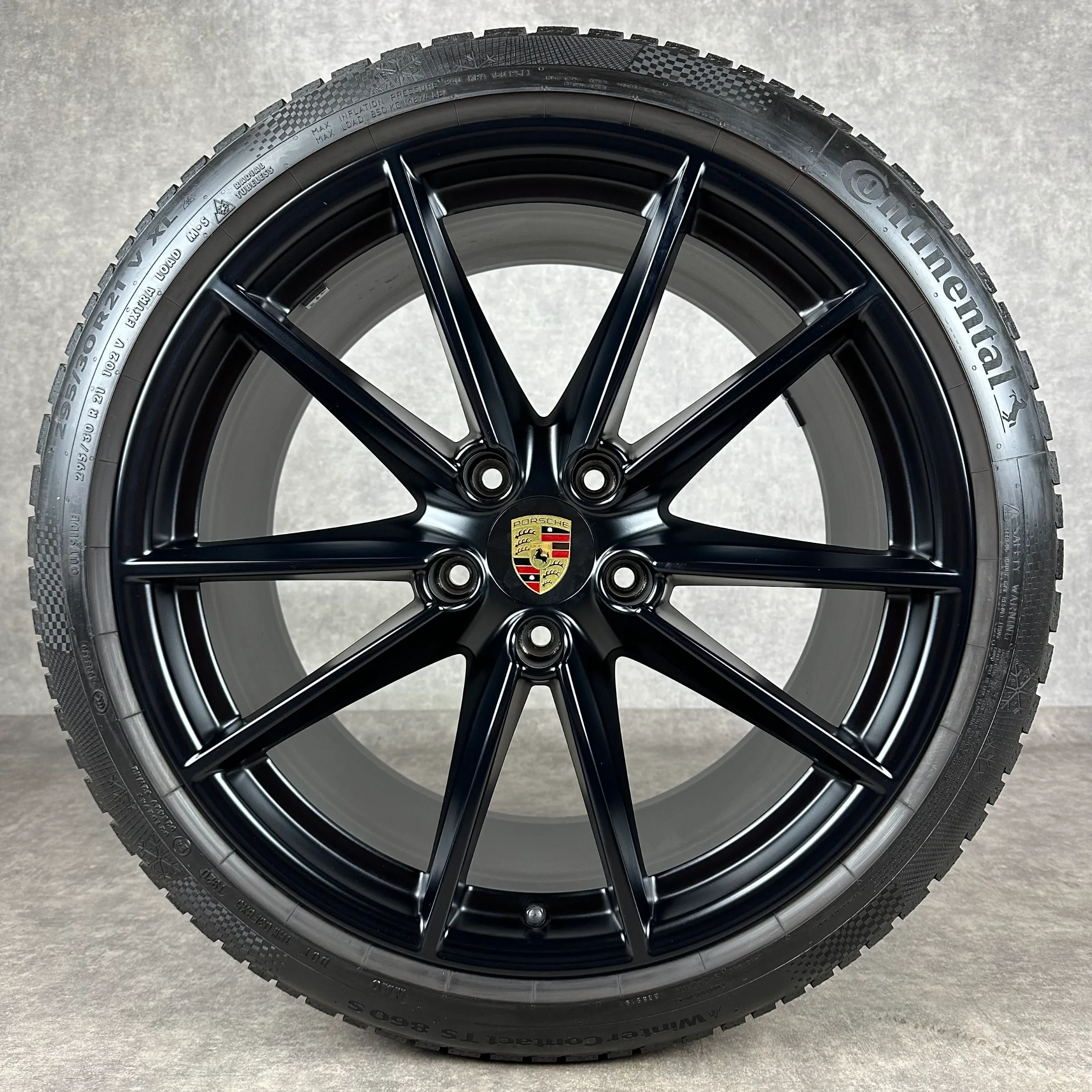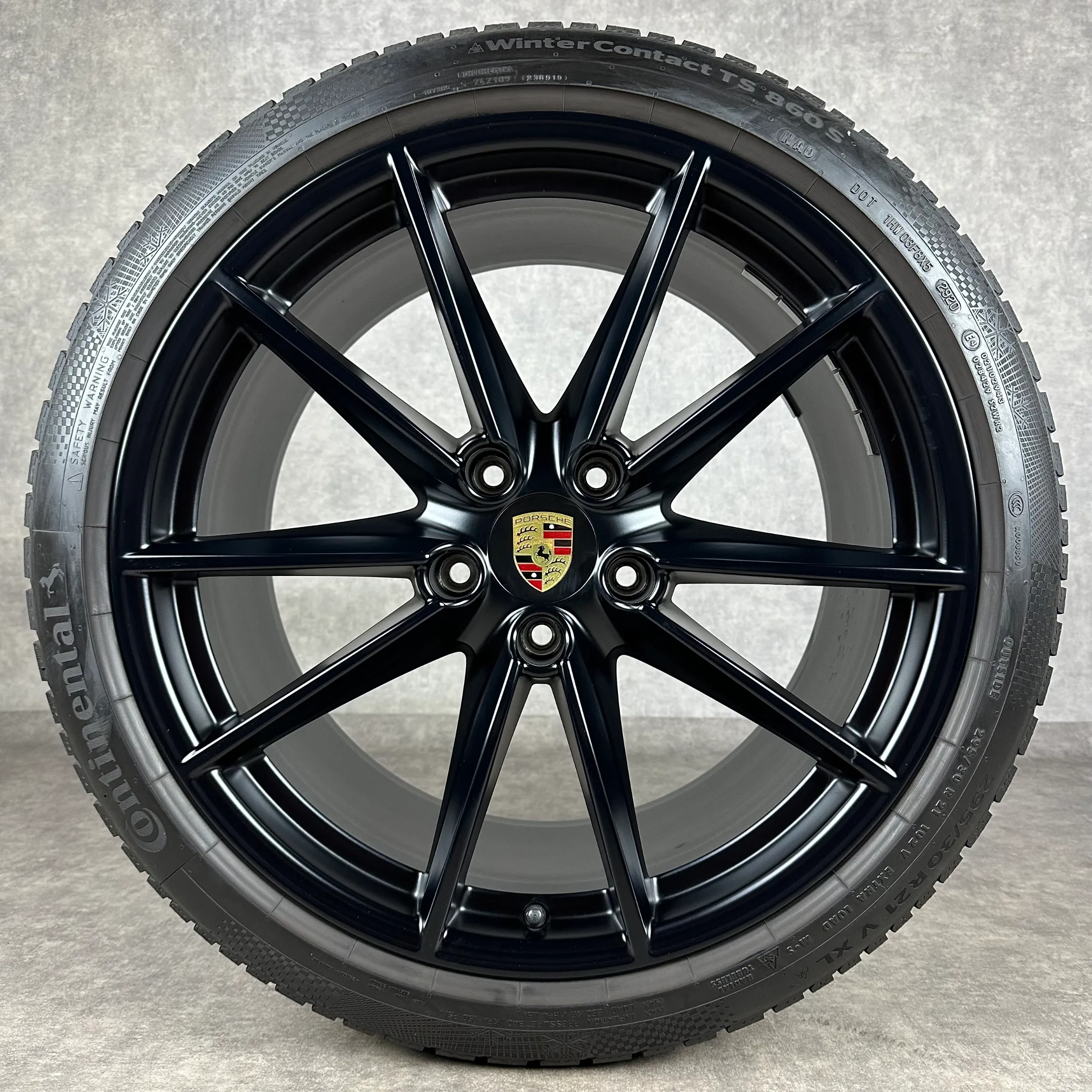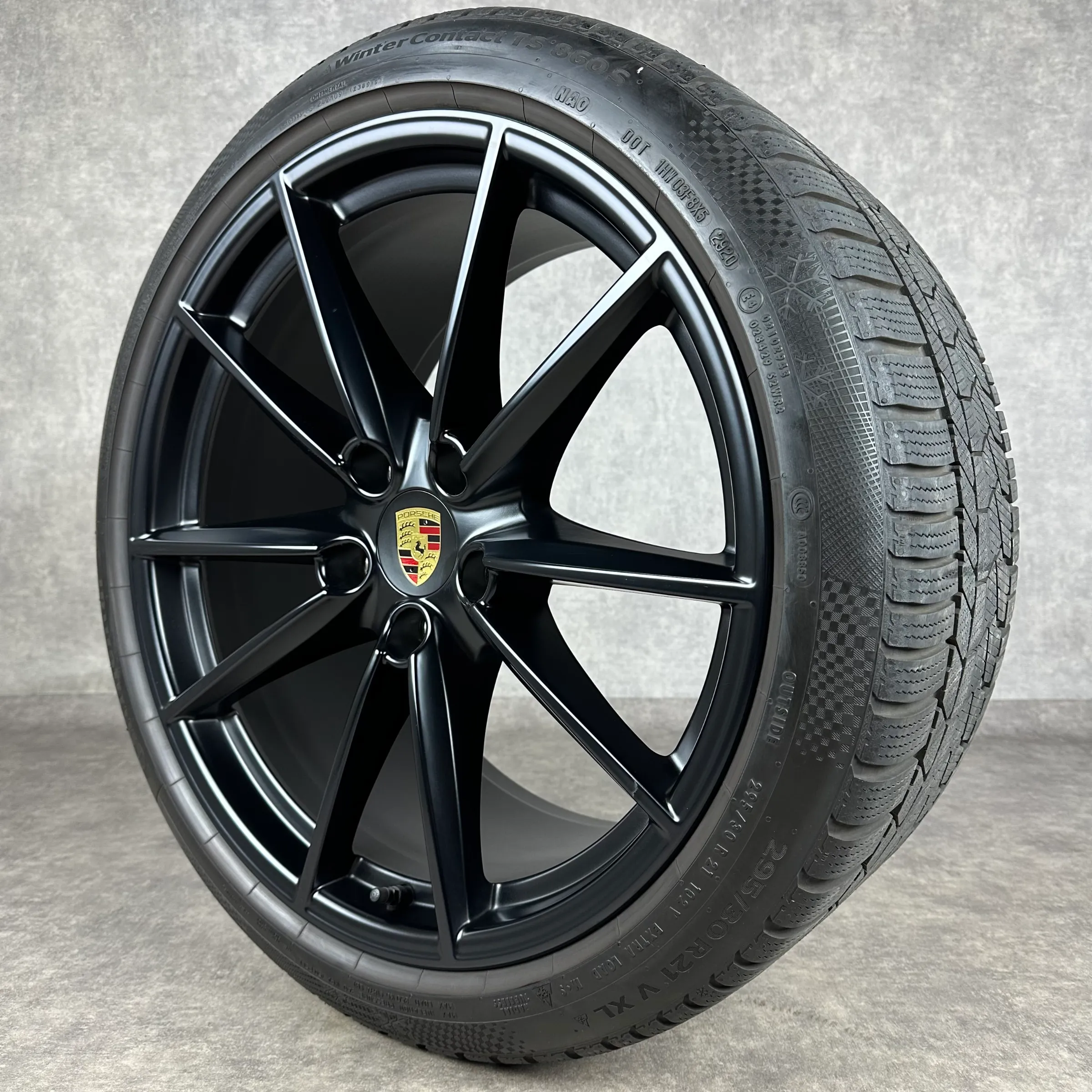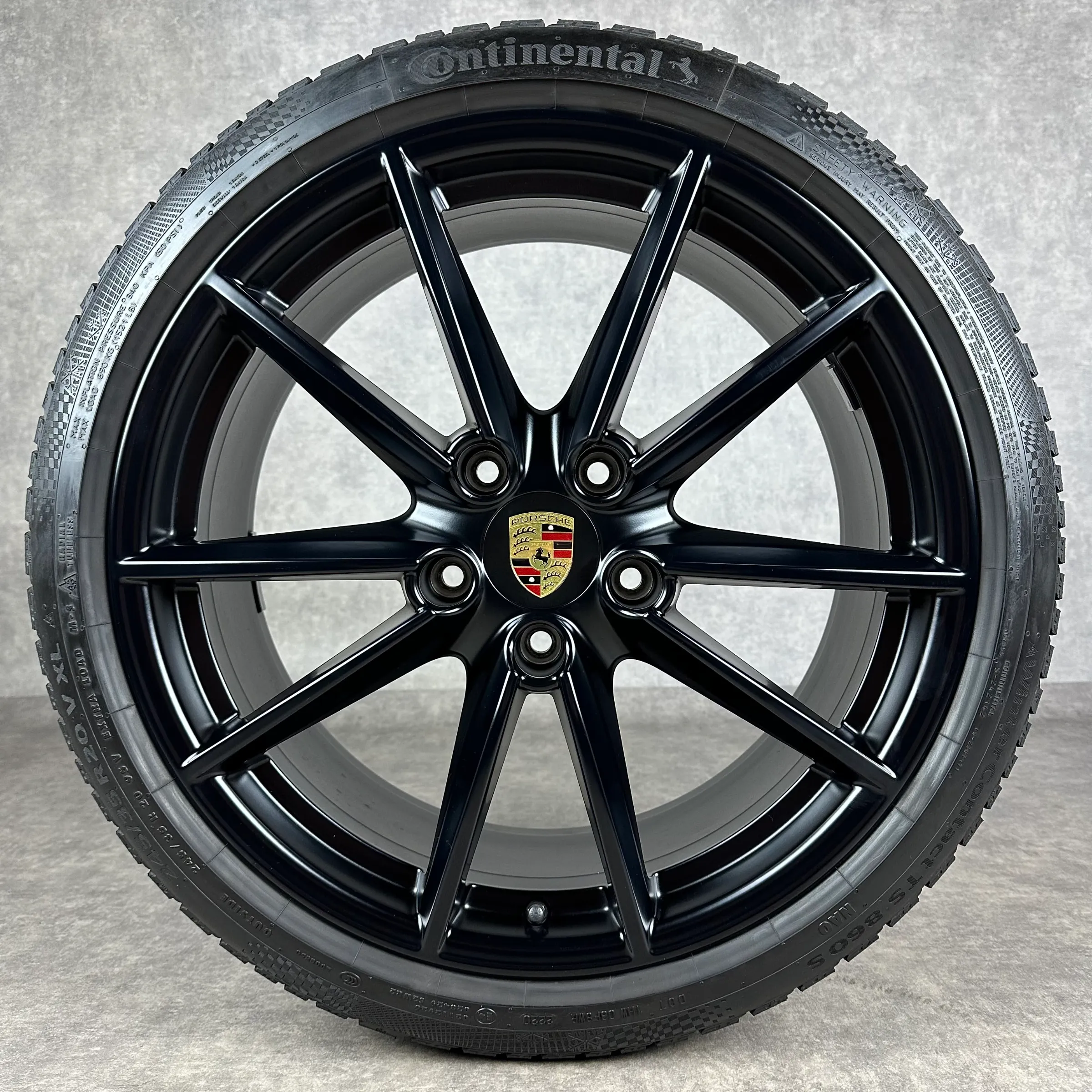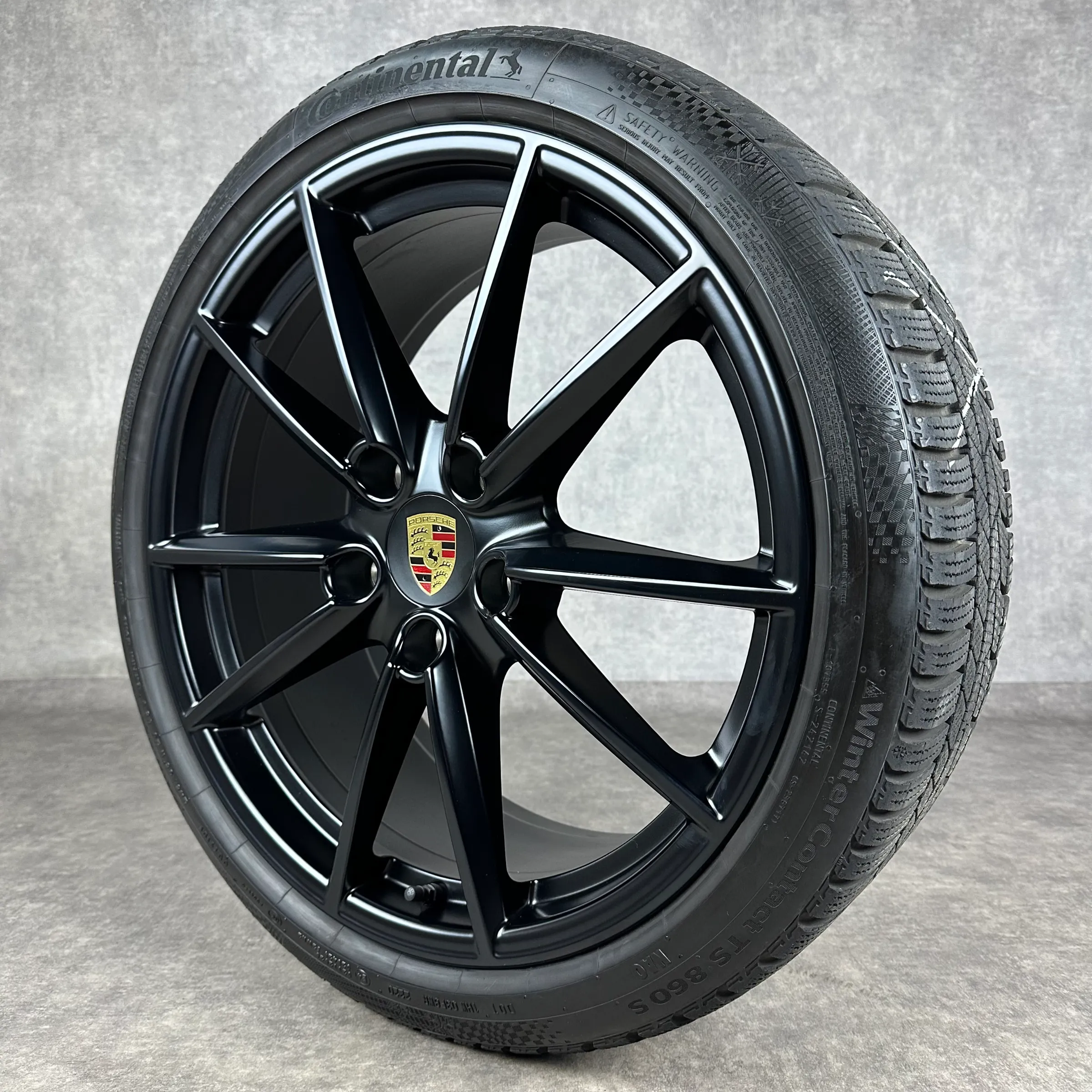 Angeboten werden 4x Original PORSCHE 911 (992) Carrera S Winter-Kompletträder in schwarz seidenglanz.