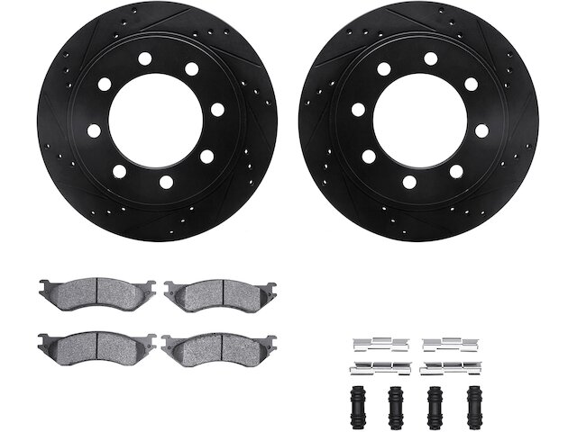 Rotors-Drilled and Slotted-Black with Ultimate Duty Performance Brake Pads includes Hardware