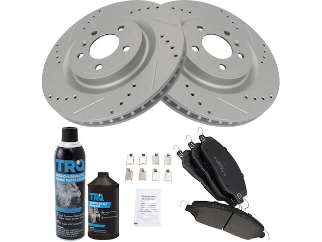 Package Contents: (1) Front Semi-Metallic Brake Pad Set; (1) Brake Cleaner & Fluid Kit; (1) Front Premium G-Coated Performance Brake Rotor Set