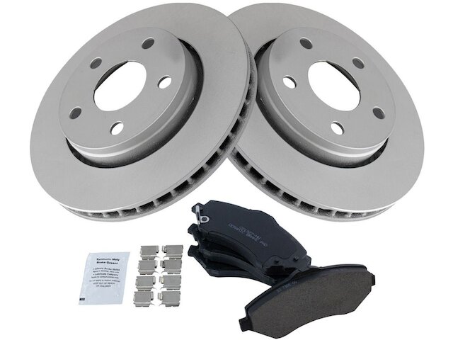 Package Contents: (1) Front Ceramic Brake Pad Set; (1) Brake Cleaner & Fluid Kit; (2) Front Premium G-Coated Brake Rotors
