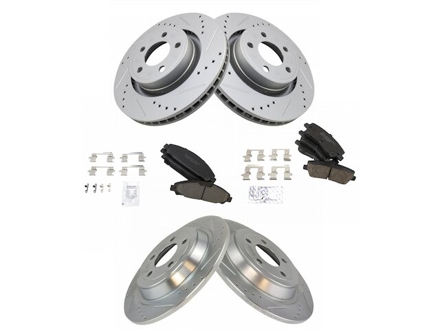 Package Contents: (1) Front Ceramic Brake Pad Set; (1) Rear Ceramic Brake Pad Set; (2) Rear Performance Brake Rotors; (2) Front Performance Brake Rotors