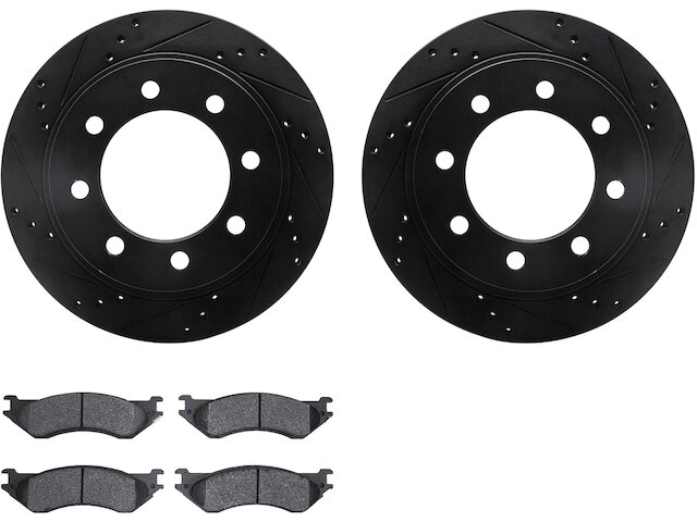 Rotors-Drilled and Slotted-Black with Heavy Duty Brake Pads