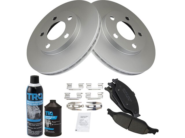 Package Contents: (1) Front Ceramic Brake Pad Set; (1) Brake Cleaner & Fluid Kit; (2) Front Premium G-Coated Brake Rotors
