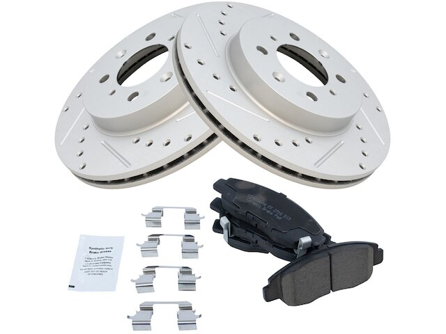 Package Contents: (2) Front Performance Brake Rotors; (1) Front Ceramic Brake Pad Set; Brake Pad Contact Point Grease; Brake Pad Hardware