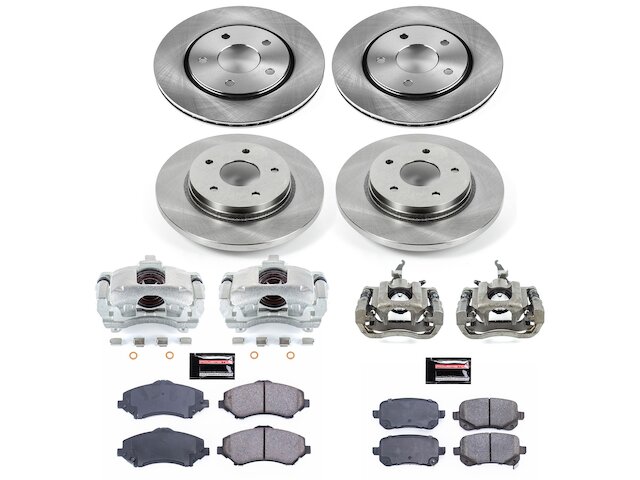 Front and Rear OE Stock Replacement Low-Dust Ceramic Brake Pad, Rotor and Caliper Kit