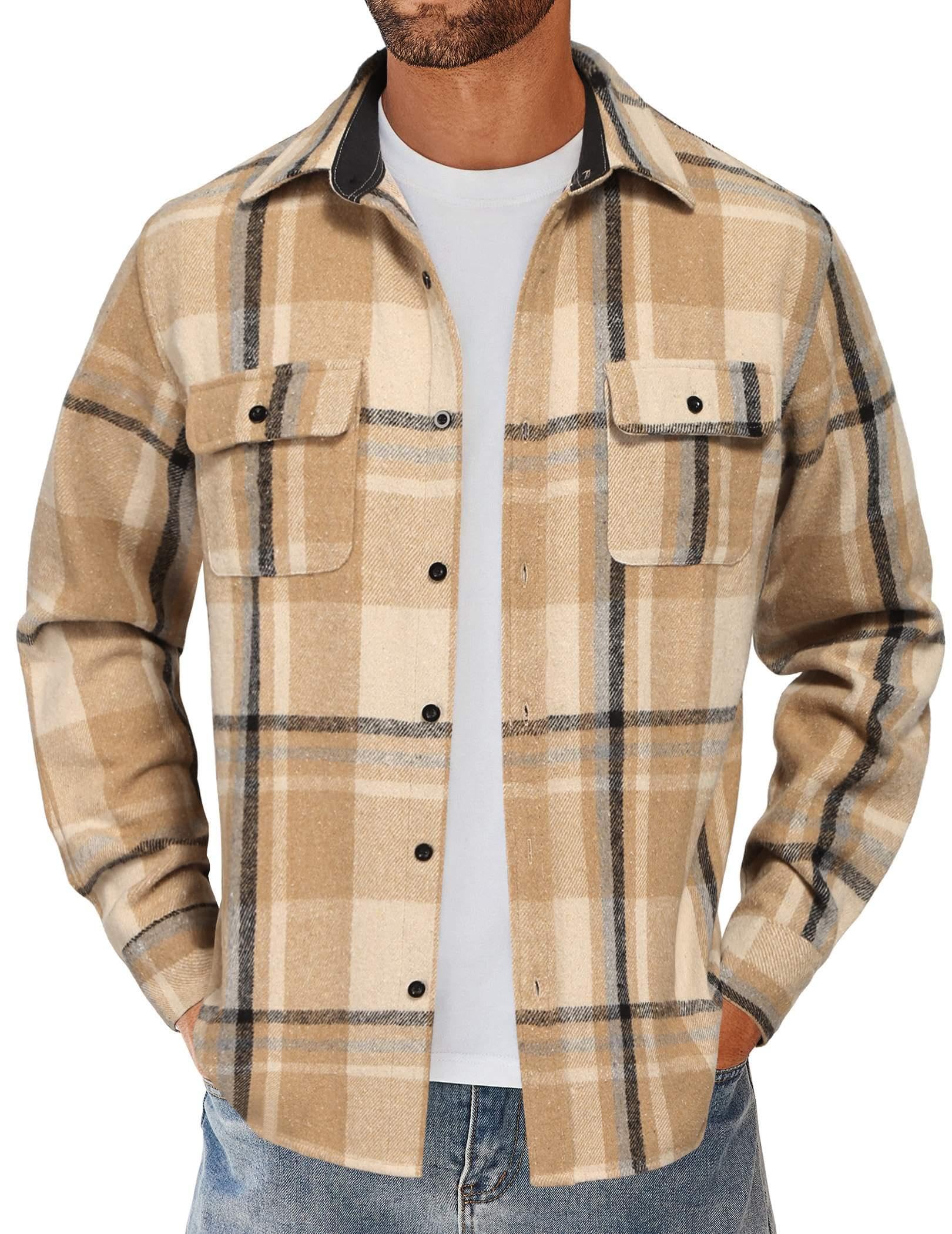 The Plaid Shirt Jacket features with long sleeve, spread collar, button down closure, two chest pockets, adjustable button cuffs and classic plaid pattern. Lined cuffs and collar not only does it enhance durability, but it also ensures the collar and cuffs maintain their shape. Mens Shirt provides a clean and fitted look, makes you feel comfortable all day.