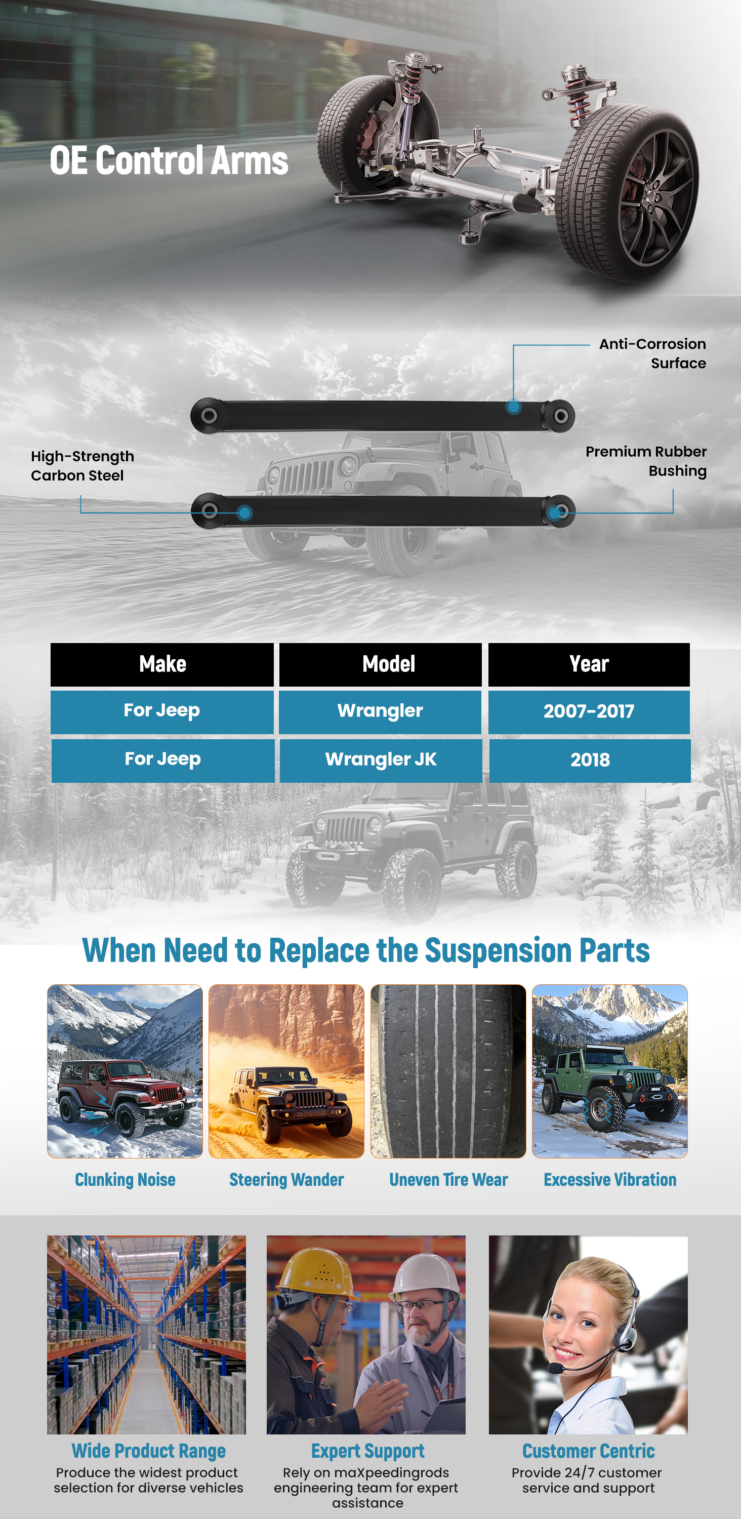 Notice:Search for "How to Install the Control Arm for Jeep Wrangler 2007 -2017" On YouTube To Get A Installation Tutorial.