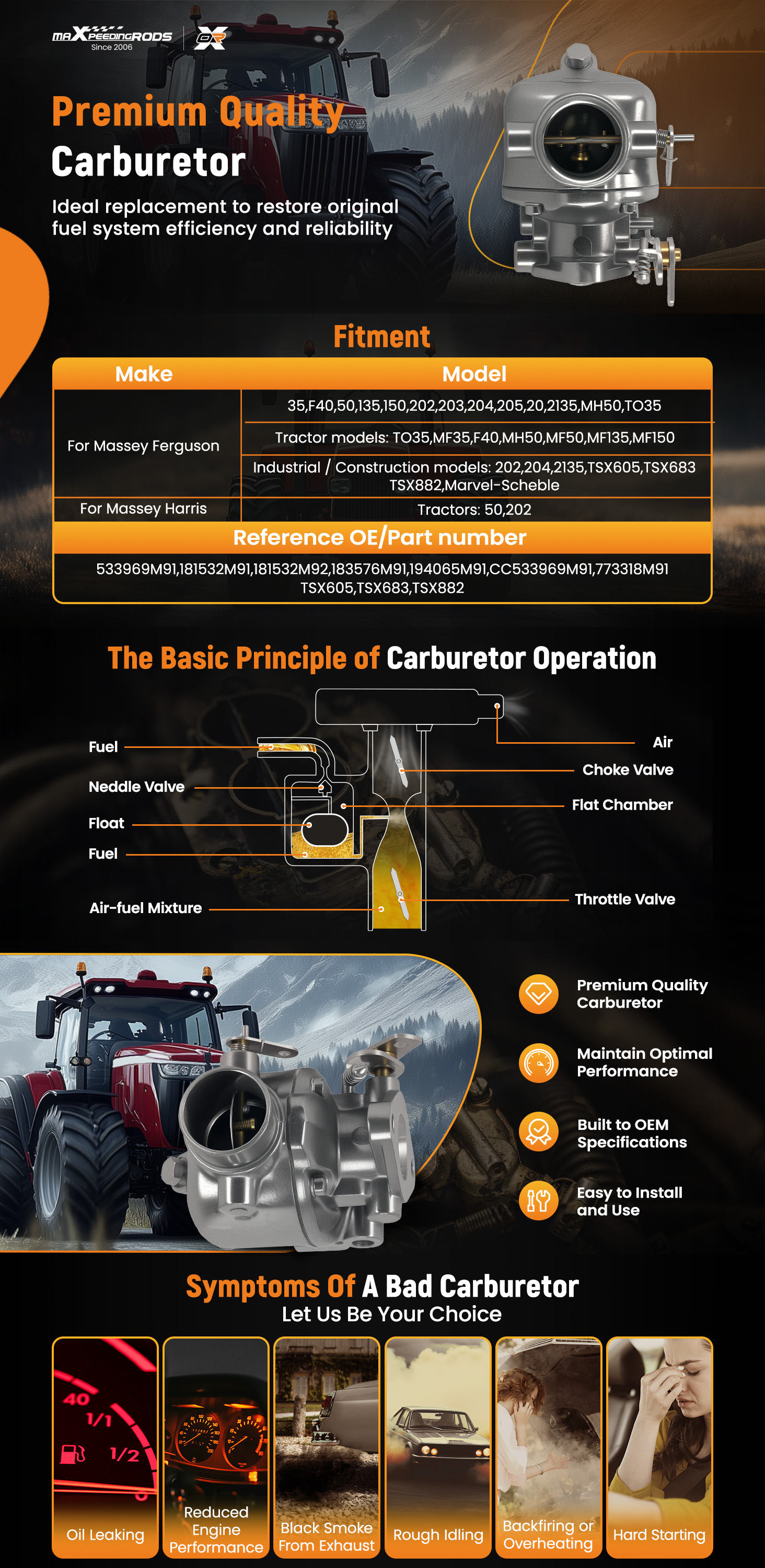 For Massey Ferguson Tractor models: TO35, MF35, F40, MH50, MF50, MF135, MF150.