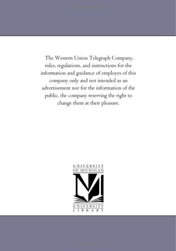 | Original Title: | The Western Union Telegraph Company, rules, regulations, and instructions for the information and guidance of employes of this company only and not ... the company reserving the right to cha |