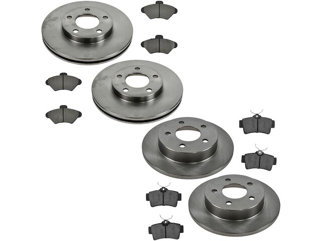 Package Contents: (2) Front Replacement Brake Rotors; (2) Rear Replacement Brake Rotors; (1) Front Ceramic Brake Pad Set; (1) Rear Ceramic Brake Pad Set; Brake Pad Contact Point Grease; Brake Pad Hardware