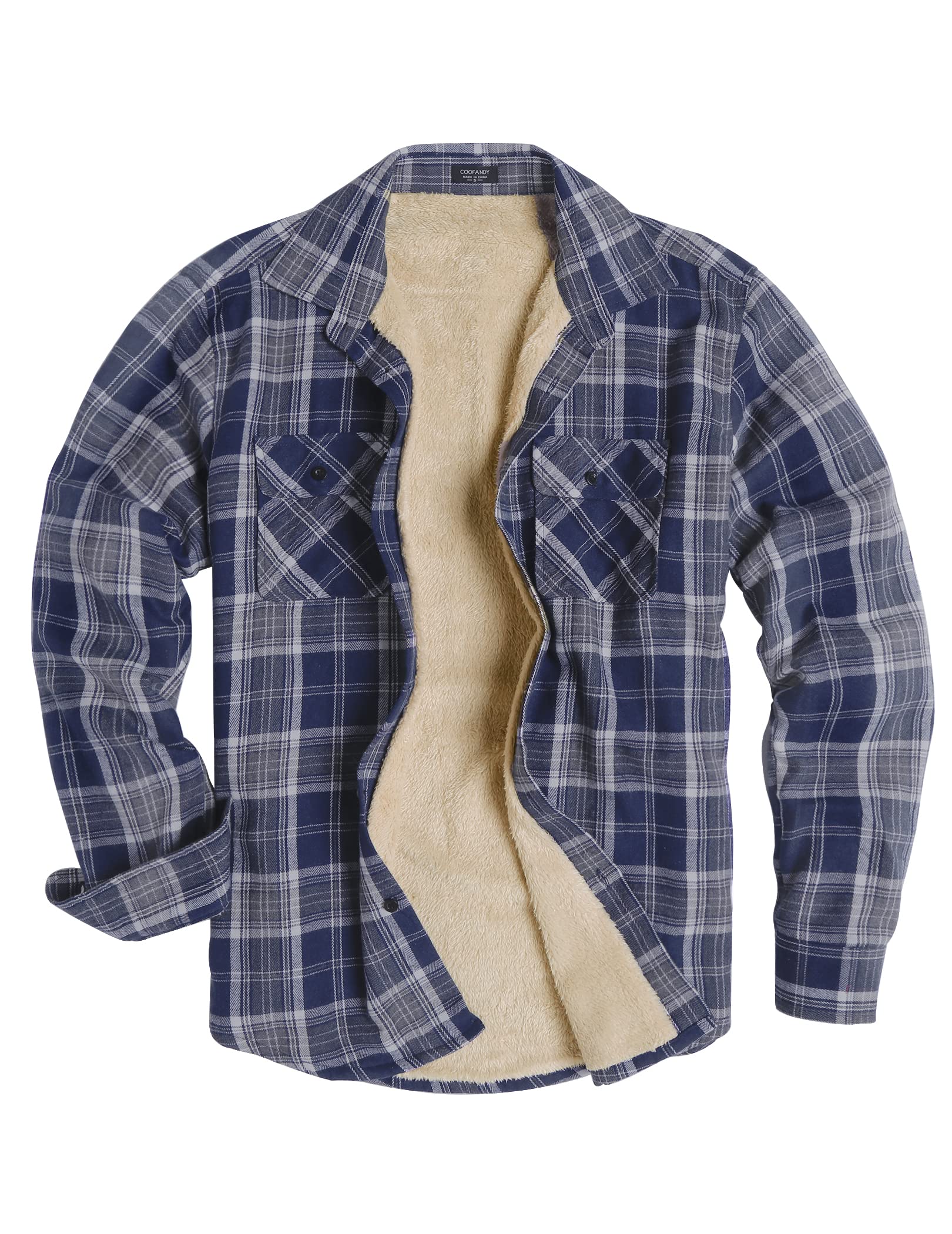 COOFANDY Men's Sherpa Lined Flannel Shirt Jacket Long Sleeve Button Up Fleece Plaid Shirts
