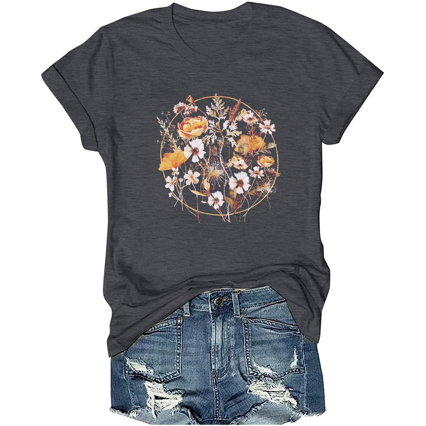 Sunflower Shirts for Women Wildflower Vintage Graphic Tees Grow Positive Thoughts Shirt Girls Short Sleeve Casual TeesQuality:Wildflower T Shirt is soft cotton fabric, loose fit and comfy shirts.Fashion mix:Easy pairing with jeans, short, legging, basic and stylish match, never out of date.Style:Vintage Plant Graphic Tees, this Beautiful Look is Simply Perfect!Occasion: This Wildflower Shirt is perfect for work, party, beach, vacation, tea time, shopping, holiday, and casual wear.Package:1 x Cute Wildflower Shirts for Women Short Sleeve Casual Summer Graphic Tee Shirts TopSize Chart: (1 inch = 2.54 cm)SIZE S -- -- Length 67 cm / 26.38 "-- -- Bust 96 cm / 37.8" -- -- Waist 94 cm / 37.01"-- -- Sleeve 17 cm / 6.69"SIZE M -- --Length 68 cm / 26.77 "-- -- Bust 100 cm / 39.37" -- -- Waist 98 cm / 38.58" -- -- Sleeve 18 cm / 7.09"SIZE L-- -- Length 69 cm / 27.17 "-- -- Bust 104 cm / 40.94" -- -- Waist 102 cm / 40.16" -- --Sleeve 19 cm / 7.48 "SIZE XL -- --Length 70 cm / 27.56"-- -- Bust 110 cm / 43.31" -- -- Waist 108 cm / 42.52"-- -- Sleeve 20 cm / 7.87"SIZE XXL -- --Length 71 cm / 27.95 "-- -- Bust 116 cm / 45.67" -- -- Waist 114 cm / 44.81"-- -- Sleeve 20 cm / 7.87"Please Allow 0.5-1Inch Differs Due to Manual Measurement,Thanks!Attention:1.About Wash: Machine Wash Cold Inside Out With Like Colors / Tumble Dry Low/Hand Wash.2.Our Quality: This Baseball Mom Casual T Shirt is Exclusively Produced by Our Factory, Through Multi-channel Processes, the Printing is Bright, and Not Easy to Fade Out.