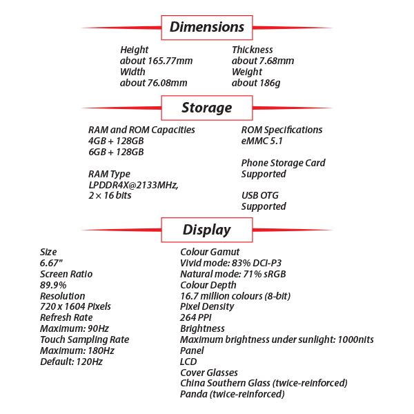 refresh rate, 89.9% screen-to-body ratio, 6.67" screen size.