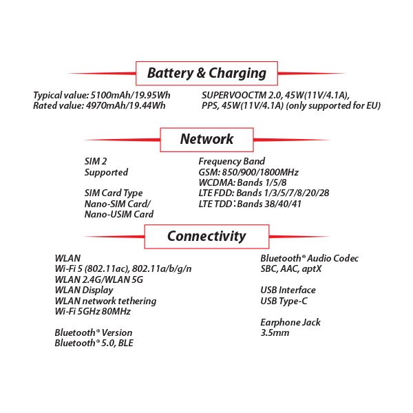 - 45W SUPERVOOC Flash Charge provides fast charging with