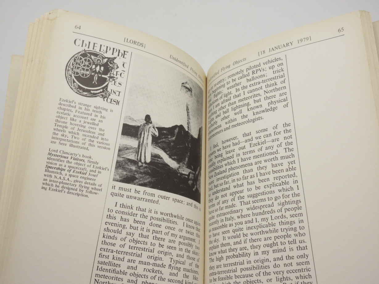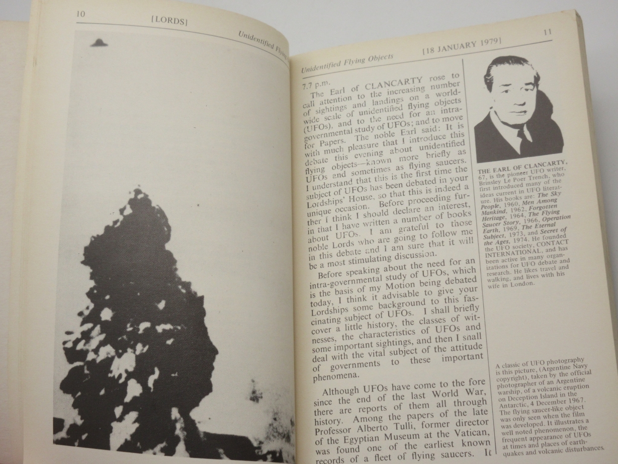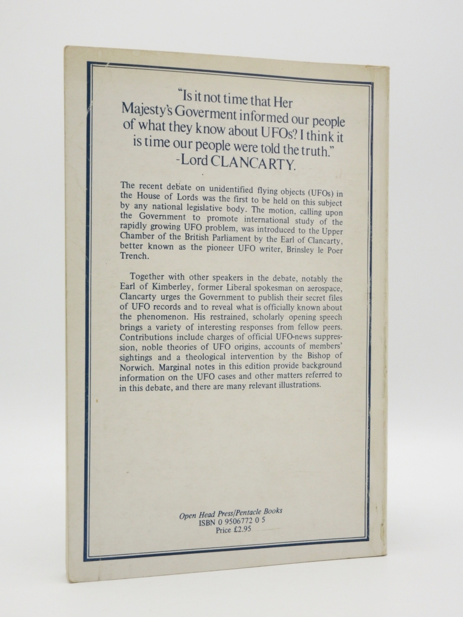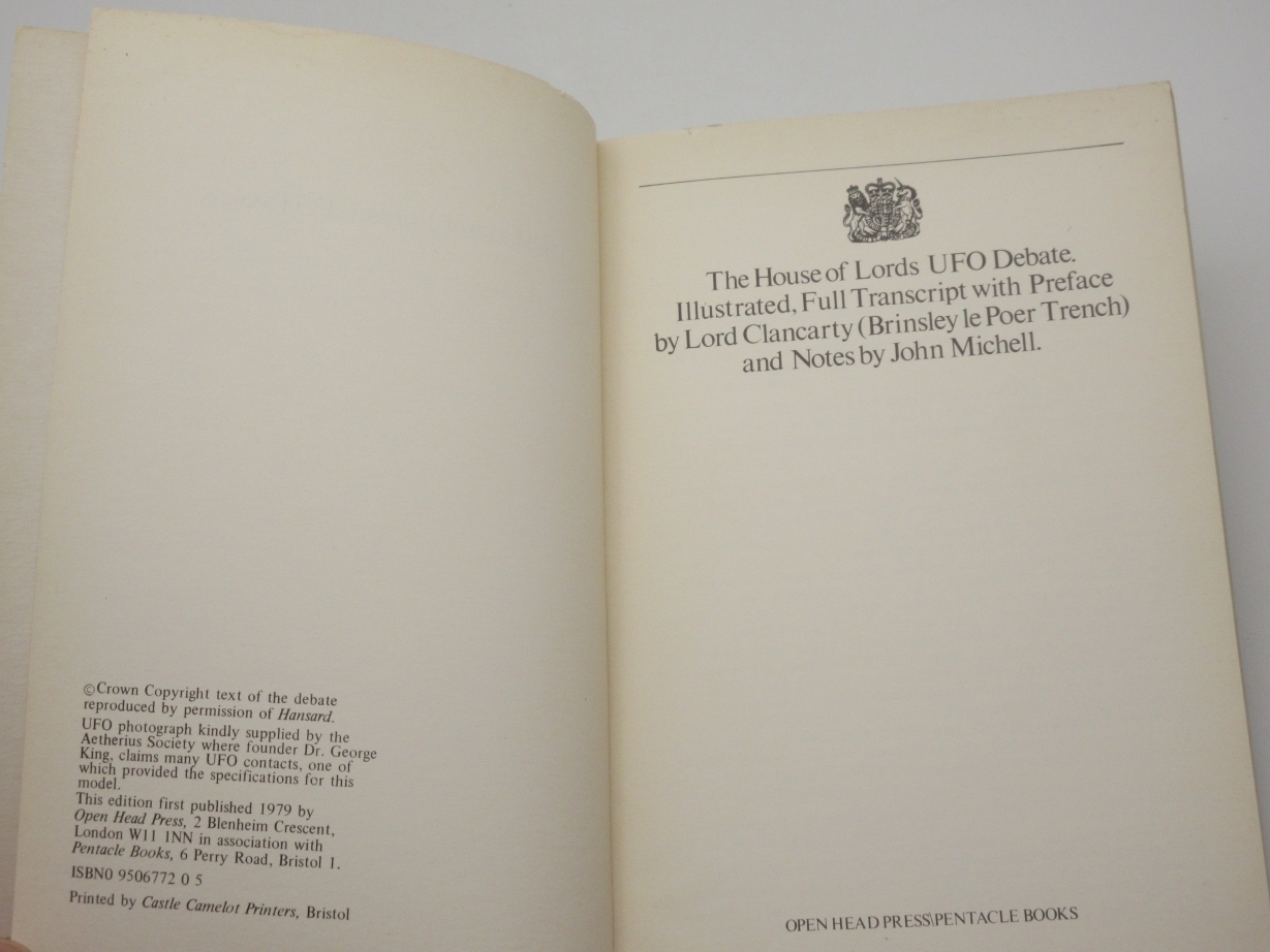 The House of Lords UFO Debate Illustrated, Full Transcript with Preface By Lord Clancarty [Brinsley le Poer Trench] (Preface) / John Michell (Notes) London: Approx Size: 5.25 x 8.25 inches (13 x 21 cms) Paperback. 115 printed pages Card wraps with slight browning and light marking. Small light stain to upper corner of page block, text is otherwise clean throughout. Overall Condition is Good + There are many more rare and collectable books in our eBay shop, all at very reasonable prices Why not take a look... HERE Keyword SearchTerms: UFO, U.F.O. Unidentified Flying Objects, Flying Saucer, Flying Saucers, Investigation, Conspiracy Theory, UK Government |