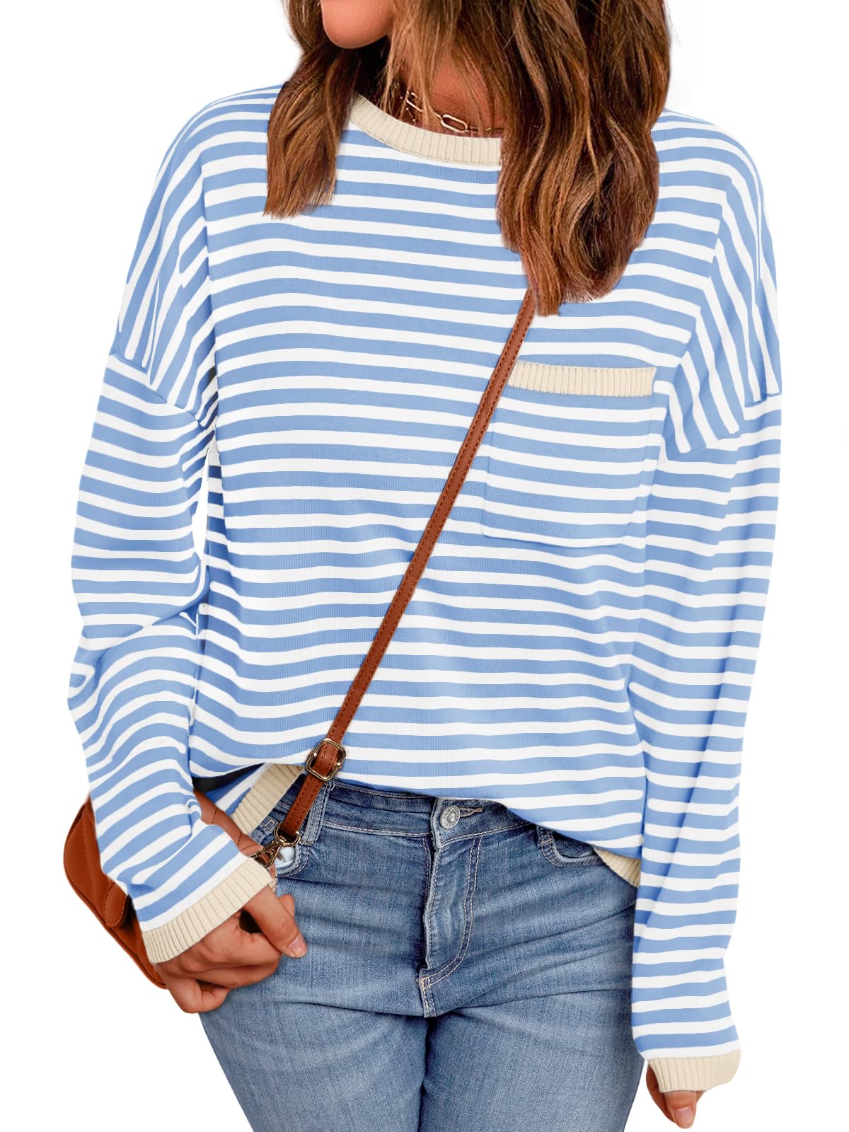 Channel your inner French girl with our striped sweater. Featuring relaxed fit, color block stripes and chest pocket for added fun, this crewneck will be your perfect pick for warmth and style in one.