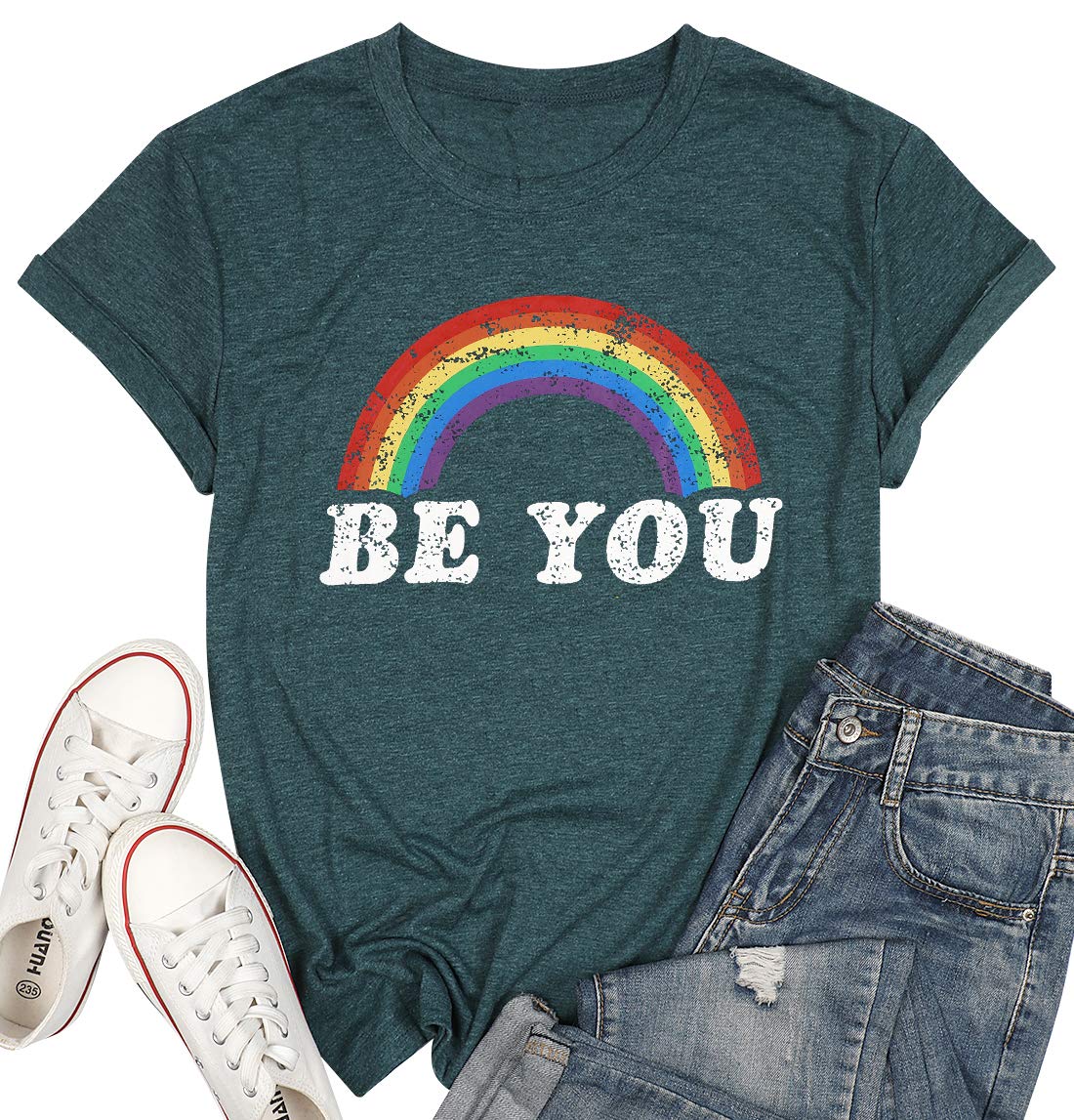 Be You Gay Pride Funny Shirt, Rainbow LGBTQ Casual O-neck Short Sleeve Tops Tees