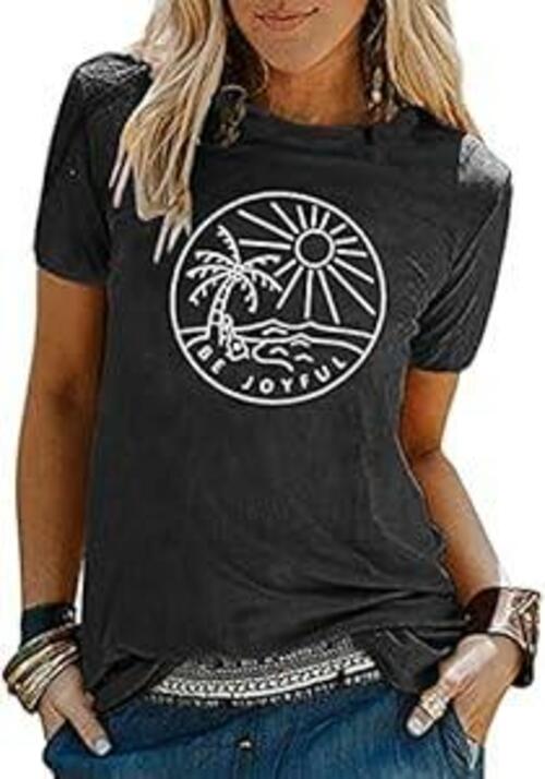 Package Included: 1x Be Joyful Sunshine T-Shirt Women Beach Coconut Trees Graphic Shirt Spring Vacation Tee Tops. Suggest To Hand/Machine Wash Cold Water, Do Not Dry Clean, Not Bleach.
