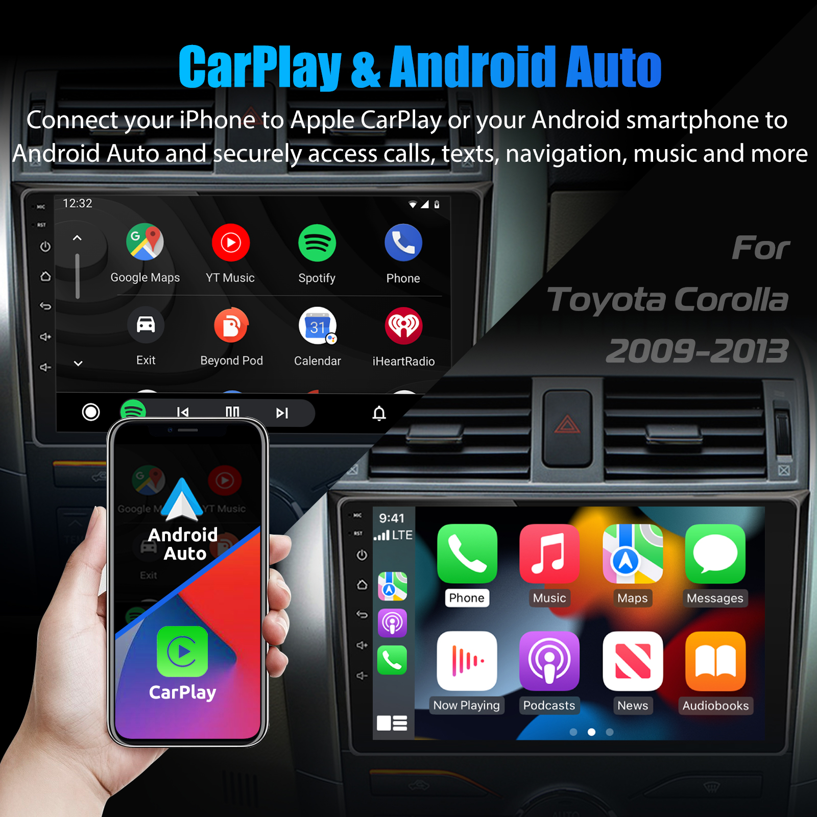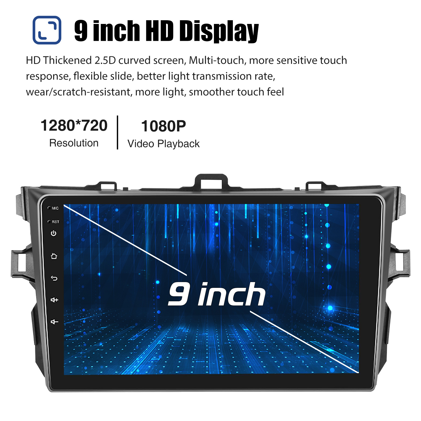 9 Inch Android 14 Car Radio Toyota Corolla 2008-2013: The Android car radio with 9" 1280*720 HD capacitive touch screen, 2GB RAM and 32GB ROM allows you to download your favorite apps and videos, so that driving will never be boring .No additional frame, no cable change, plug and play.