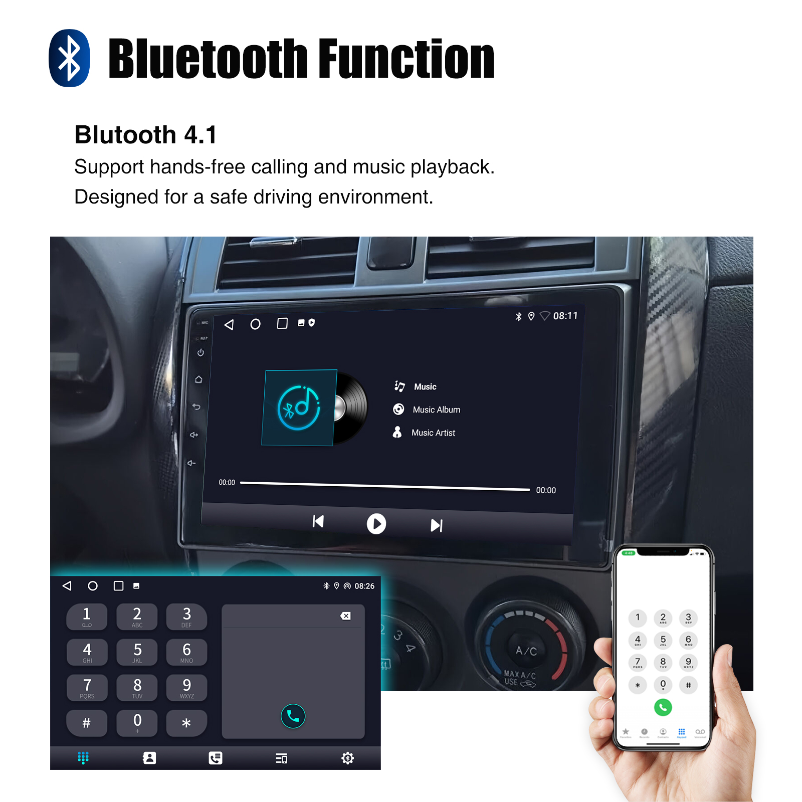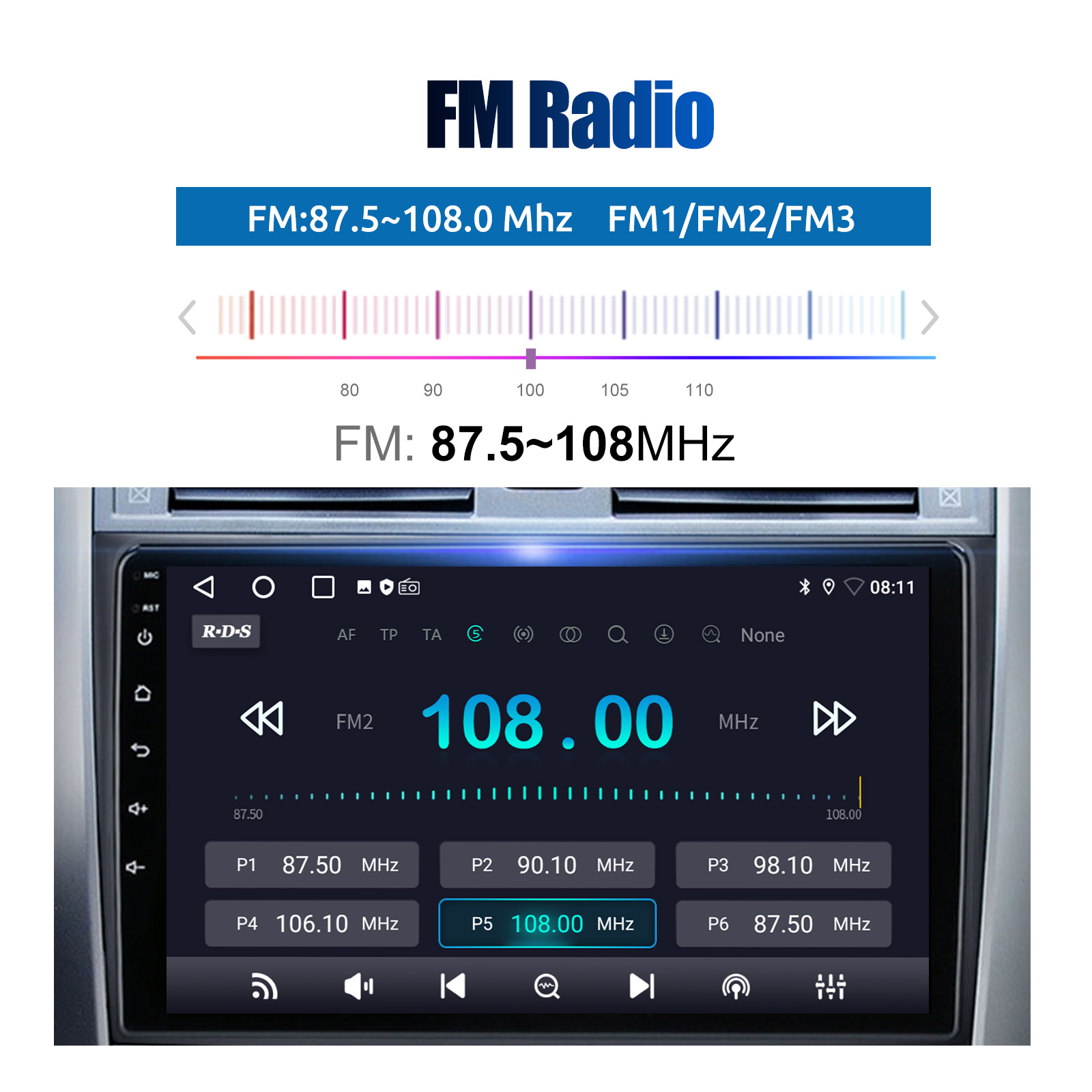 RDS/FM Radio & Bluetooth & ASP Sound Setting: Supports Bluetooth 4.1, with built-in microphone so you can make hands-free calls while driving. Support access to phone book, music playback interface, etc. RDS supported. You can save 18 FM radio stations. Built-in ASP chip. Supports 32-band EQ setting, which can be adjusted according to your personal preference. Which is very similar to your original sound. 4 x 45W amplifier, surround sound and subwoofer output
