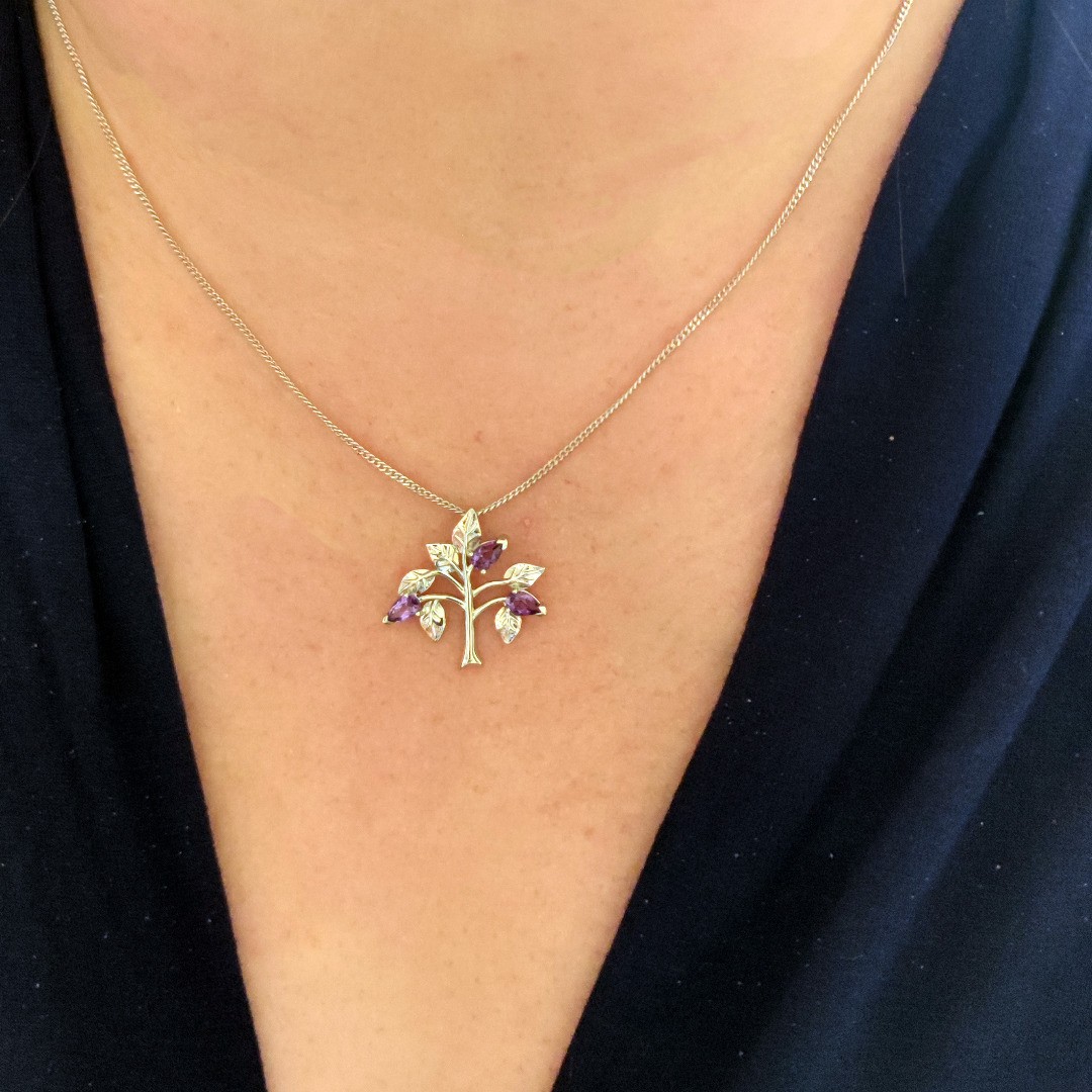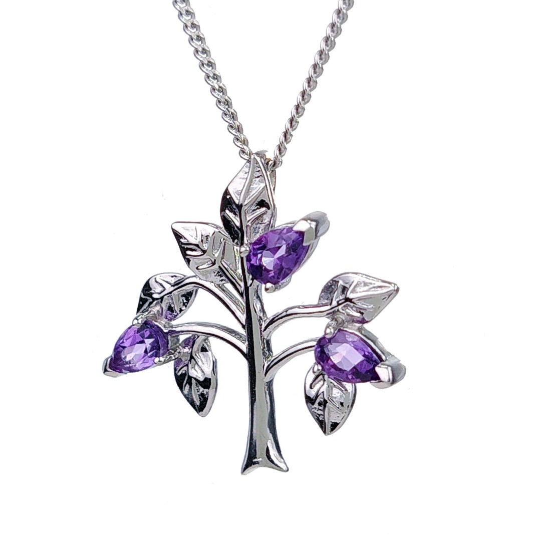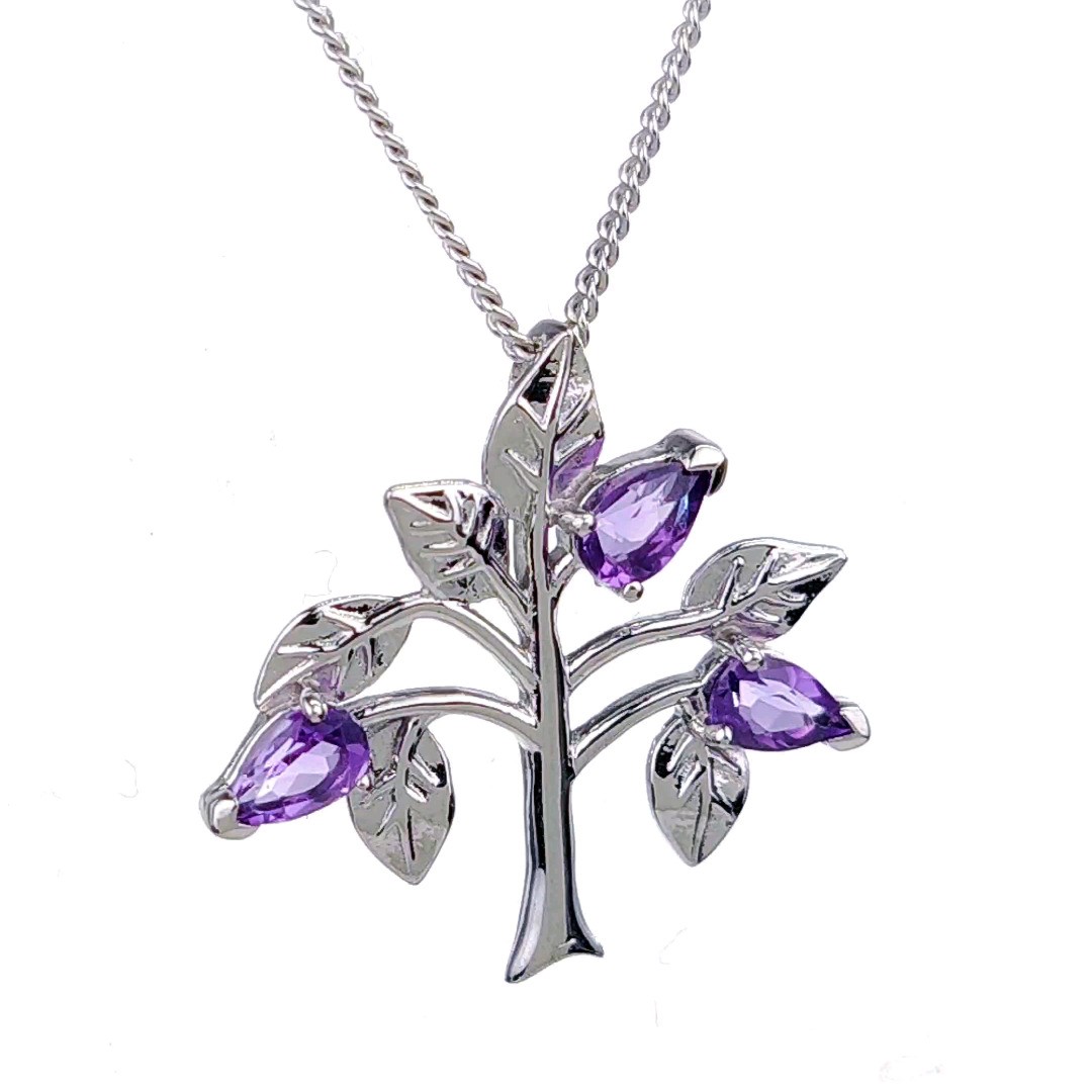 Natural Amethyst Necklace Sterling Silver Purple Gemstone Tree of Life Handmade