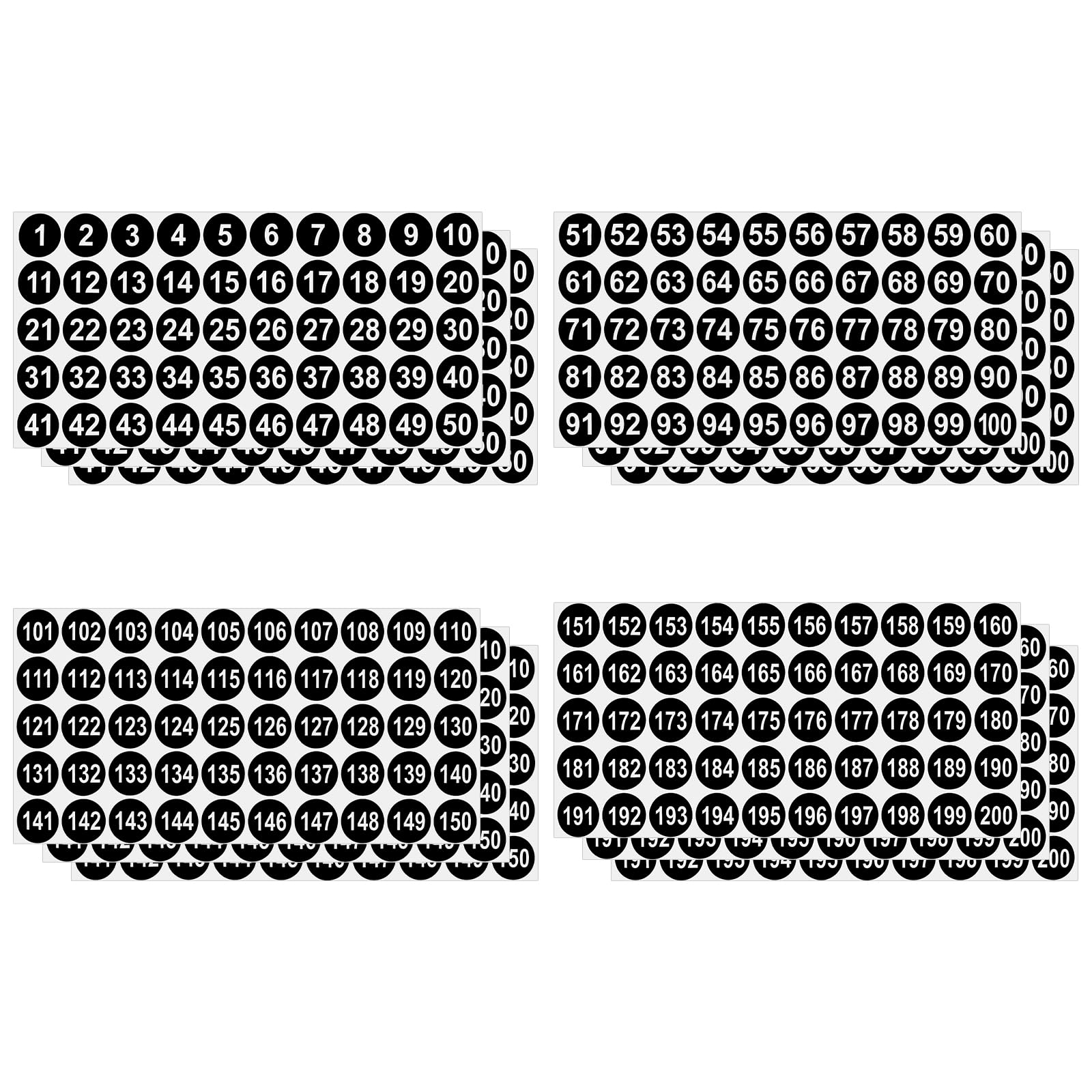 12 Sheets 1-200 Number Stickers Self Adhesive Consecutive Number Stickers