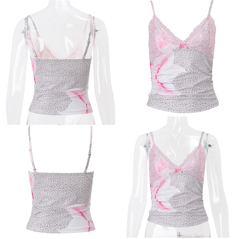 Womens Vest Print Camisole Bralette Crop Top Street V-Neck Vacation Lace PartyUSD 6.99