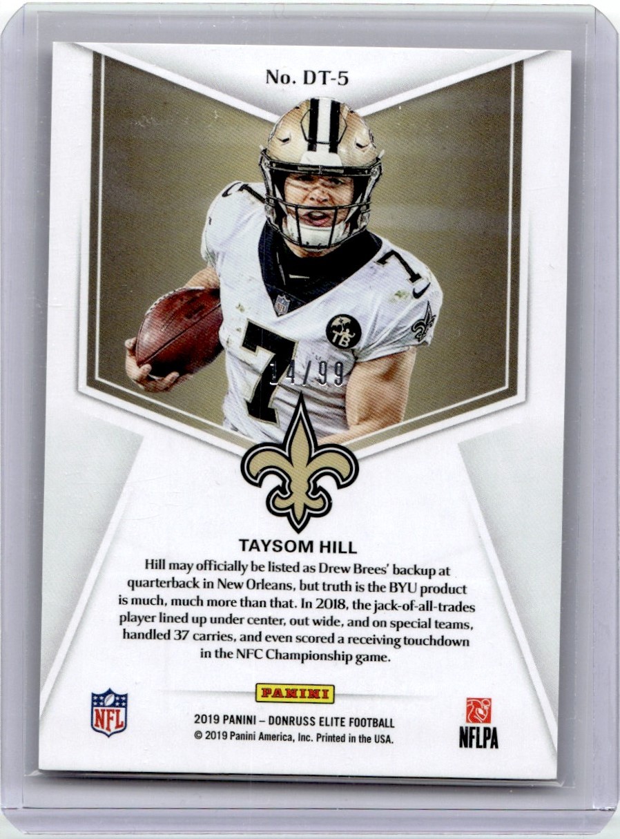 | 2019 DONRUSS ELITE DUAL THREATS TAYSOM HILL /99 NEW ORLEANS SAINTS |