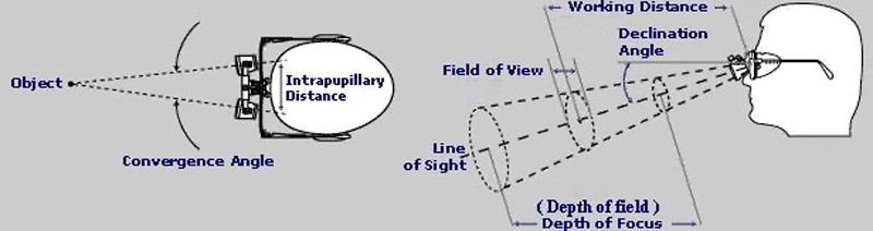 2.5X Loupes Field Of View: 150mm,Depth of field: 280mm, Working Distance R(300mm -500mm), Weight: 45g.