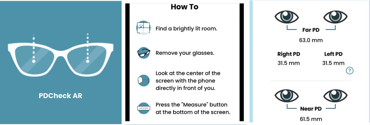 Buyer can use PDCheck AR APP on phone, and save PD data screenshot.Read the tips and operate to test your interpupillary distance.There are Far PD and Near PD. If you are a dentist, you need to choose Far PD, but need to reduce 4mm, for example Far PD is 63mm, that mean dental working distance Near PD should be 59mm, then you need to choose Near PD variation when place order. If you are surgeon, you can use the Near PD 61mm data directly but need to send message to seller that you are surgeon.If your Near Pupil distance is not included into loupes variations, please choose Other Near PD, and leave your Near interpupillary distance in the message and we will customize it according to your size.