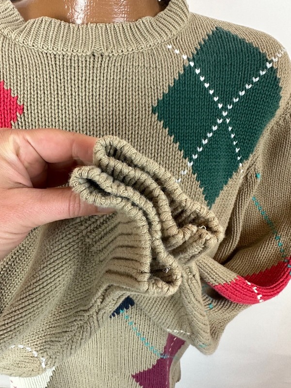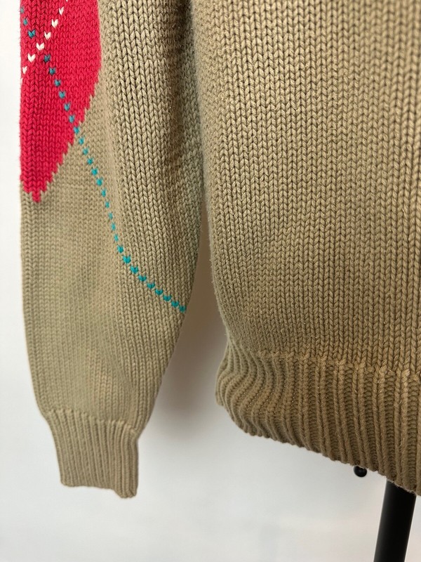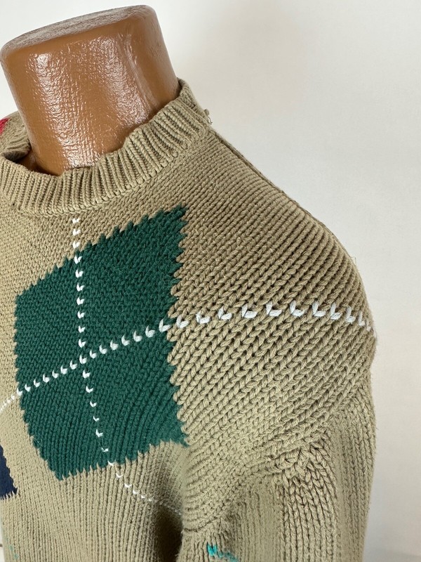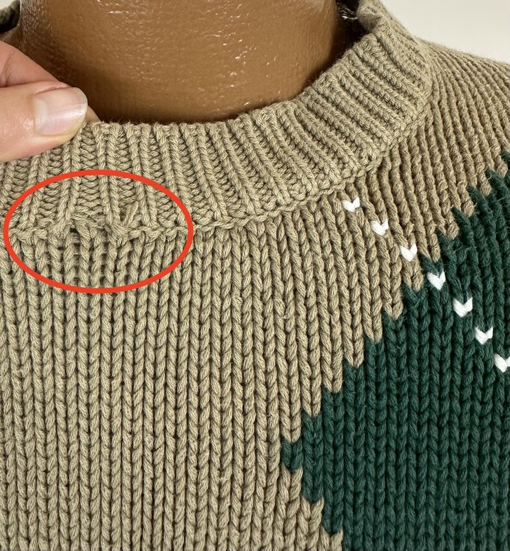 CONDITION: AS IS - hole at front neck and side of neck, some light bleach spots at back shoulder and front right sleeve. Overall moderate general wear, fading, light pilling / fuzziness to knit. See pics for details. See measurements to ensure a proper fit.