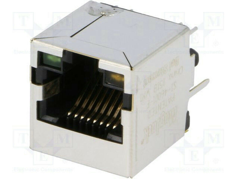 1 Port RJ45 Magjack Connector Through Hole 10/100 Base-T, AutoMDIX Manufacturer: Bel Product Category: Modular Connectors / Ethernet Connectors Product: Modular Jacks USOC Codes: RJ45 Number of Positions: 8 Position Number of Ports: 1 Port Mounting Style: Press Fit Termination Style: Through Hole Shielding: Shielded Series: SI Contact Plating: Gold Gender: Jack Housing Material: Thermoplastic Mounting Angle: Vertical Brand: Bel Magnetic Solutions Contact Material: Copper Alloy Flammability Rating: UL 94 V-0 Product Type: Modular Connectors / Ethernet Connectors