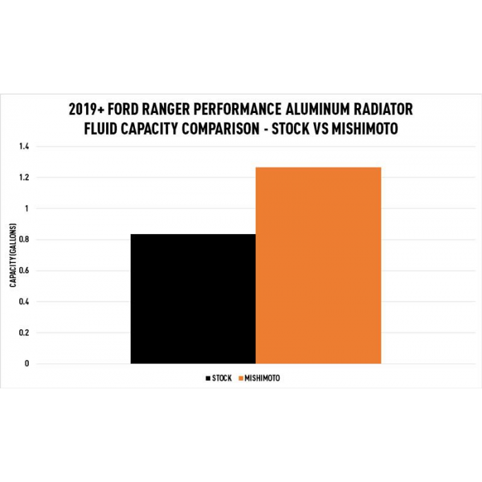 | Tech Specs | Applications: 2019-2023 Ford Ranger 2.3L EcoBoost Chassis Codes: T6 Core Height (in): 26.18 Core Length (in): 23.22 Core Thickness (in): 1.89 DPI: N/A Drain Plug Thread Size: M12 x 1.5 Engine Codes: N/A Fluid Capacity (gal): 3.39 Includes: Mishimoto Performance Aluminum Radiator-- Mishimoto Magnetic Drain Plug--Mounting Hardware--Mishimoto Lifetime Warranty Inlet (in): N/A Material: Aluminum Note: This radiator reuses the factory mounting grommets. If your grommets are damaged, you may purchase replacements under Ford part #EB3Z-6C681-B Outlet (in): N/A Overall Height (in): N/A Overall Length (in): N/A Overall Width (ins): N/A Rows: 2 |