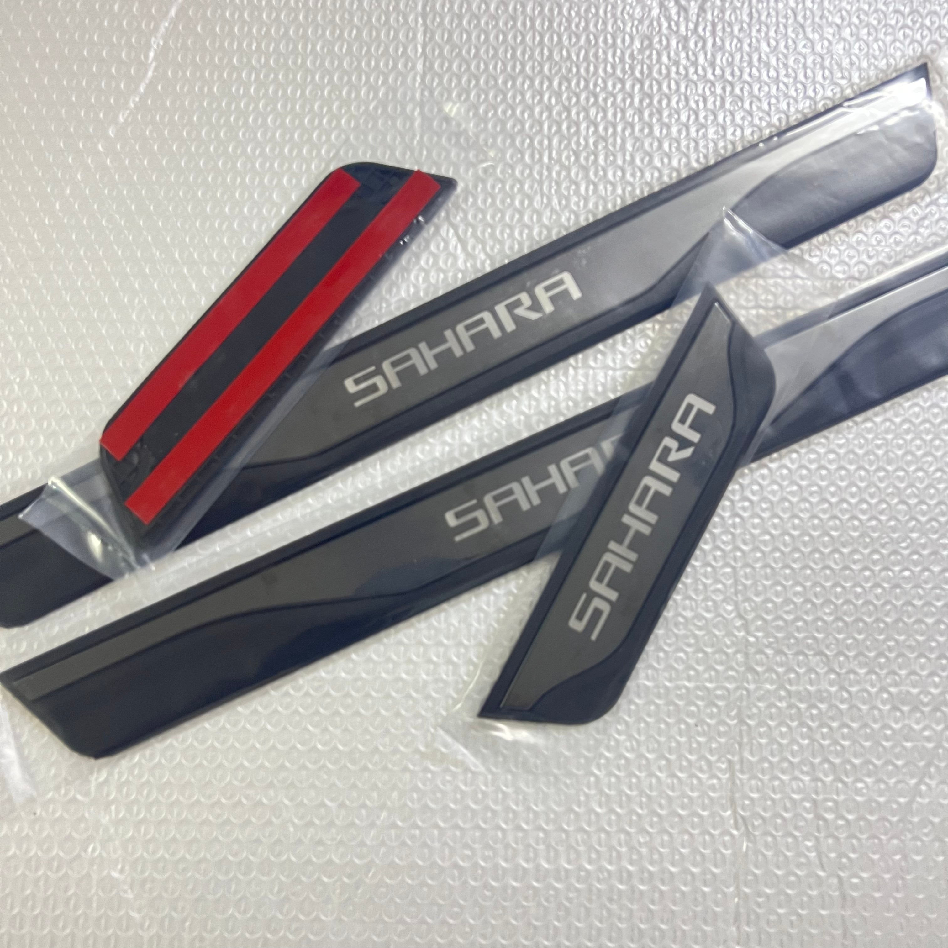Clean the door sill area to remove dust and debris.Peel the adhesive backing from the door sill cover.Align the cover to your Jeep Sahara door sill and press firmly.Enjoy added protection and style in minutes!
