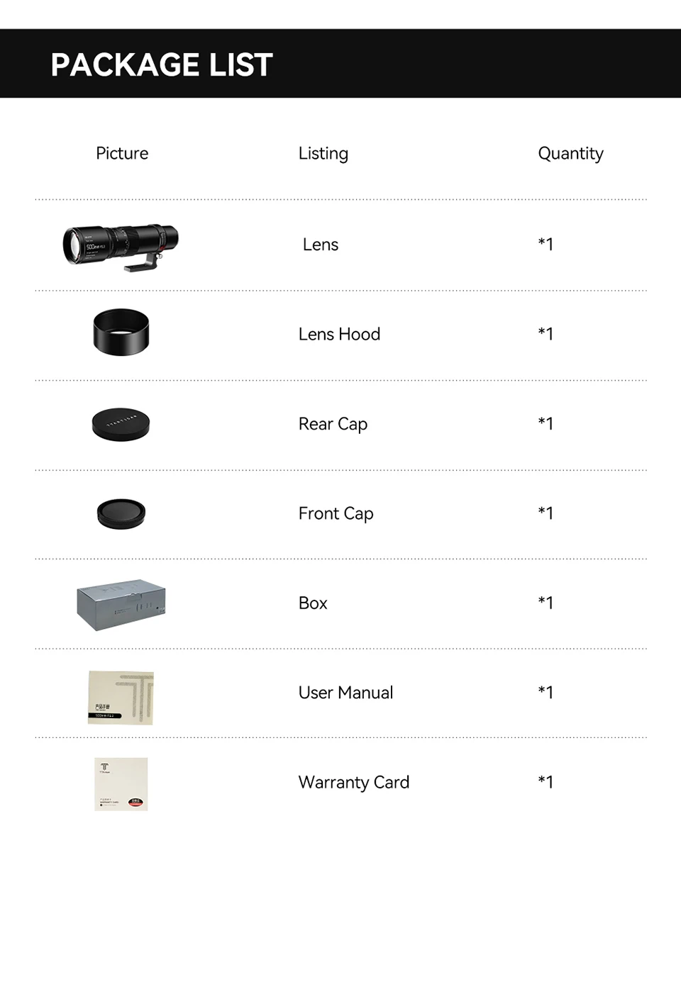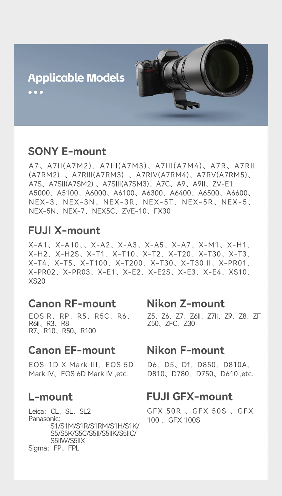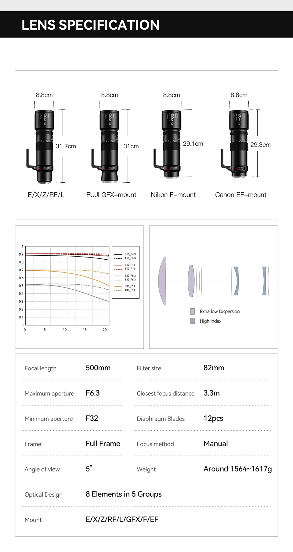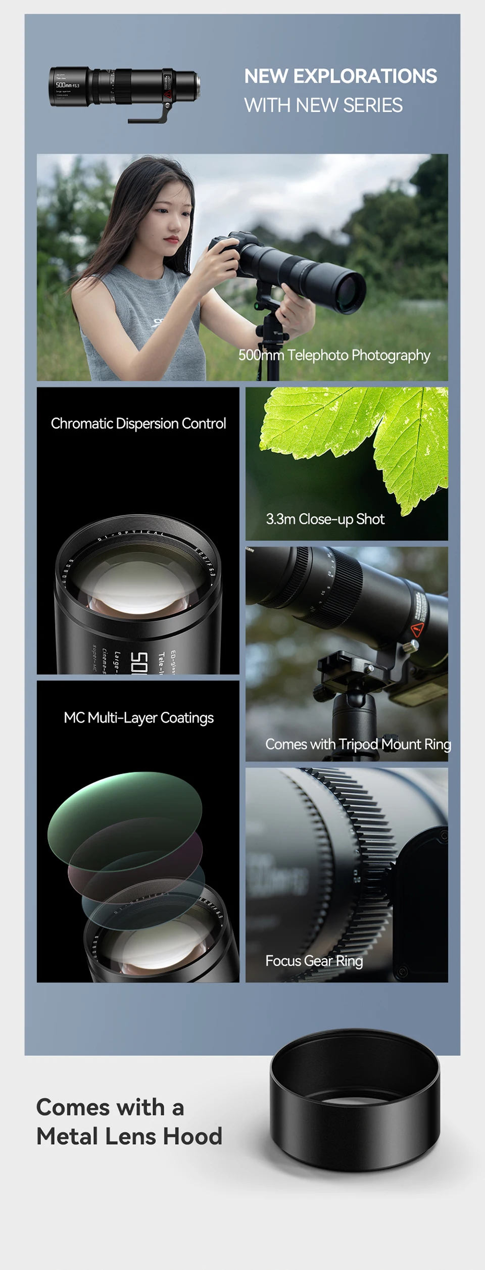 TTArtisan 500mm F6.3 Telephoto Lens Full Frame for Sony E,Nikon Z,Canon RF,L-Mount,Fuji X,Fuji GFX,Nikon F,Canon EF