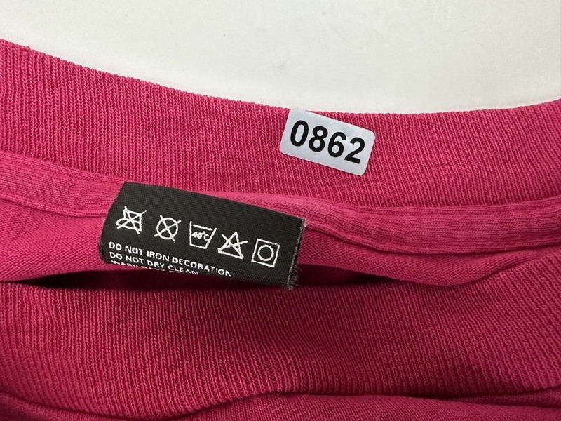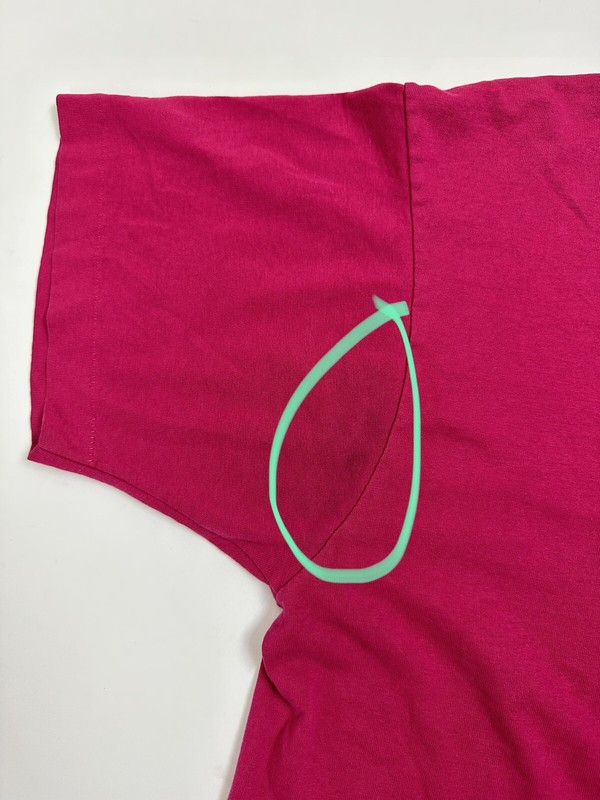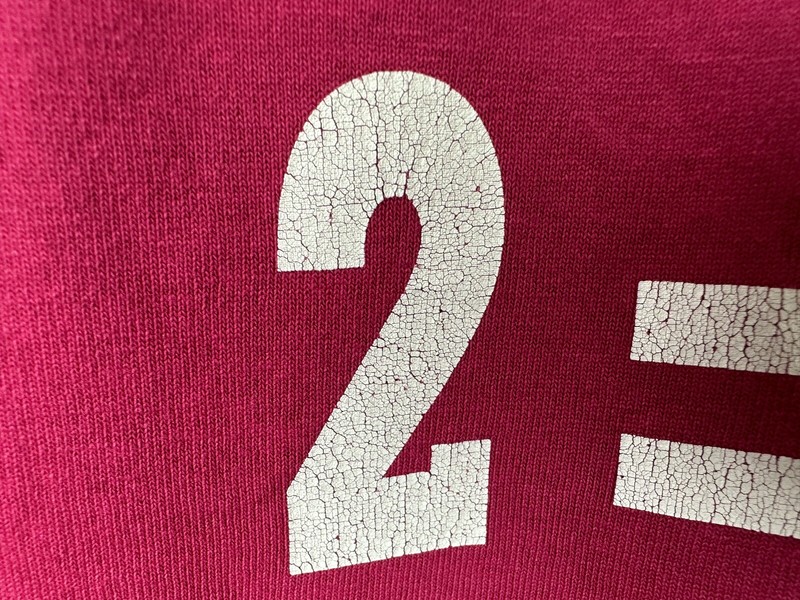 CONDITION: Gently worn with light wear. Light discoloration at right pit. Graphic has some cracks in paint. No holes. See pics for details. See measurements to ensure a proper fit.
