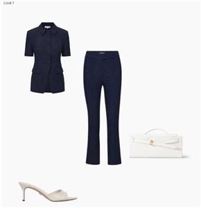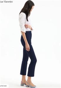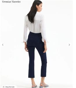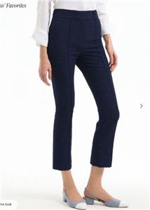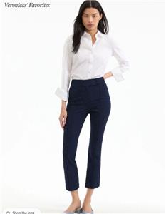 The classic slim tailored trouser, reimagined in navy floral jacquard. The Dell trouser pants feature a high-rise waist, streamlined silhouette, and a versatile cropped ankle, finished with a navy tonal pattern for understated texture. Pair these jacquard pants with the coordinating Bodie jacket for a chic spring set—the cropped length works well with flats and heels alike.