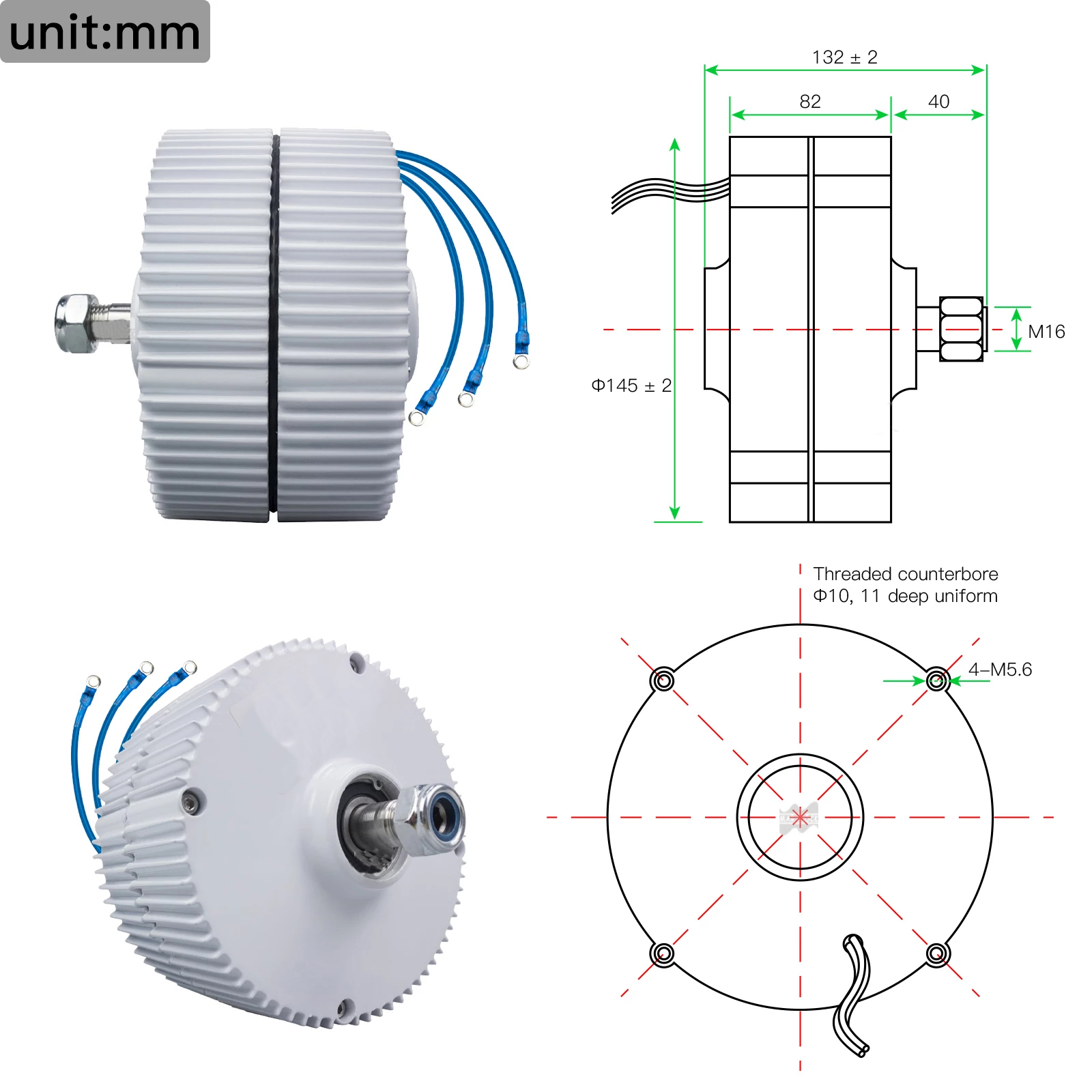 The pure copper coil can output voltage by rotating in the permanent magnetic field. When it can continuously and stably rotate at high speed, it can output a stable current. When its rotation direction changes, it does not affect the output direction of its voltage and current. Because It is a three-phase AC output, so its output wires are three pieces, non-polar.